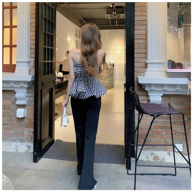 トップス サマーブラックホワイト格子柄シャツ 夏物 ナナファッション30877038362