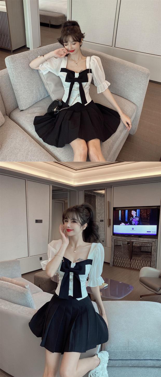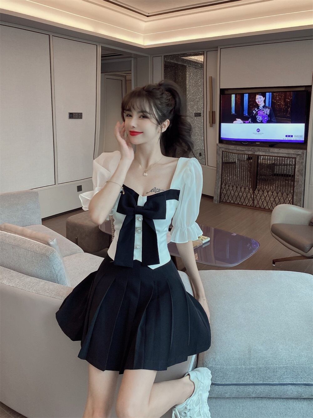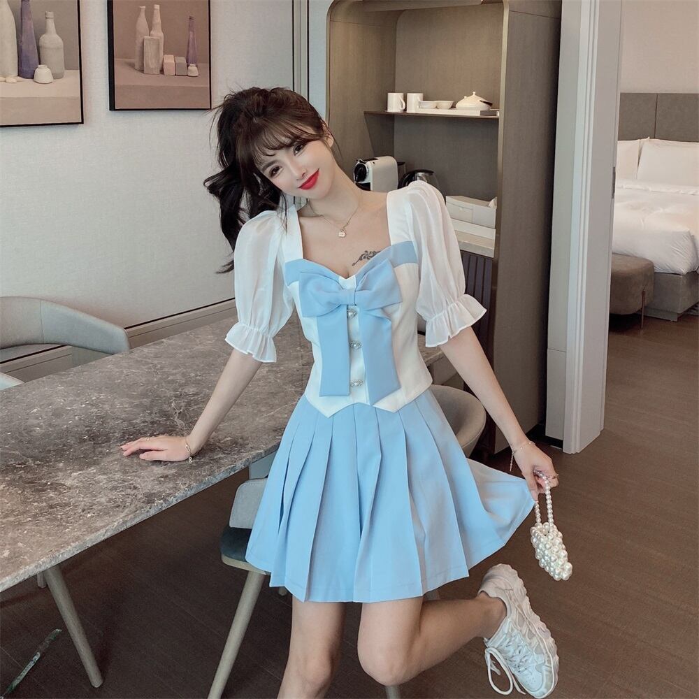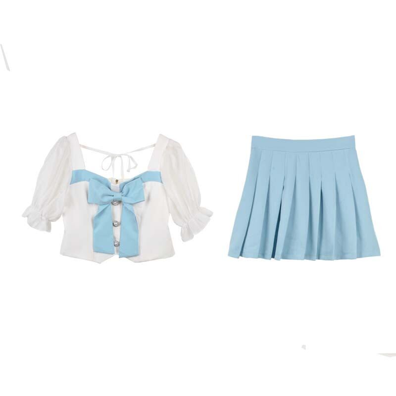サマーリボントップス プリーツスカート 大人ガーリー スウィート キュート カジュアル 夏物 ナナファッション50955257681