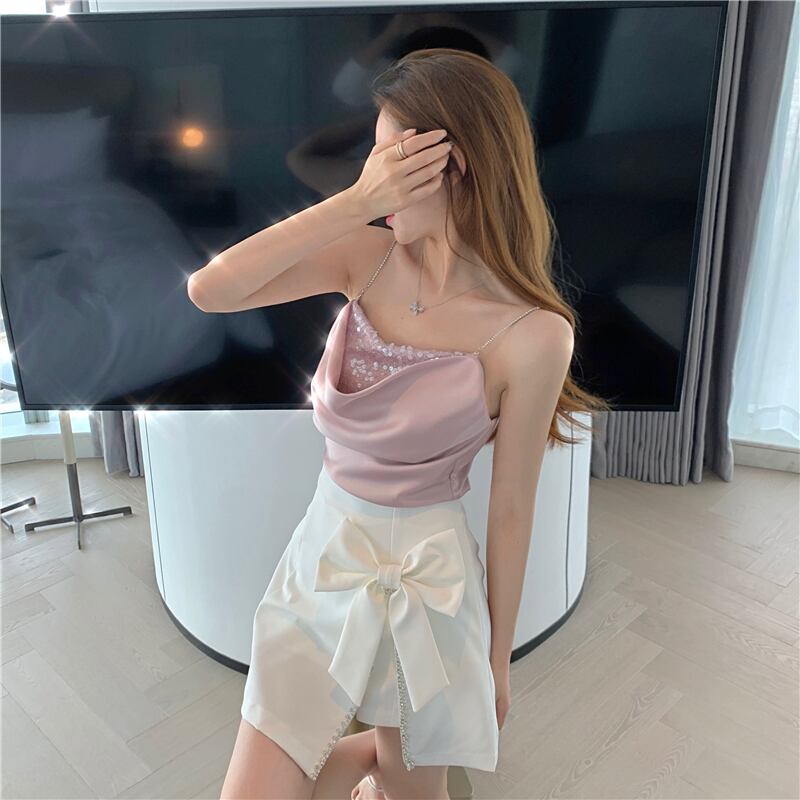 スパンコールラインストーンリボンAラインスカート ストリート 大人ガーリー スウィート キュート カジュアル ステッチ ナナファッション97693816939