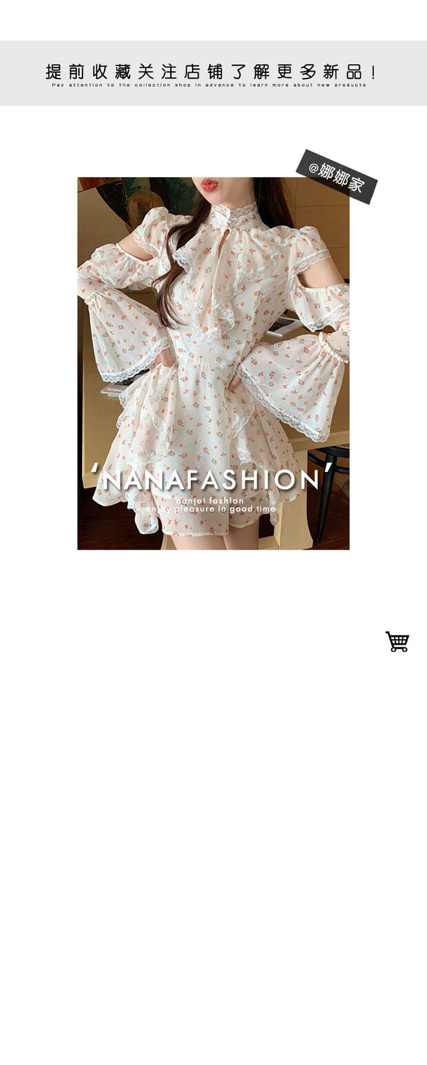 スプリングレースストラップレスフローラルスリーブドレス レッド 春物 花柄 ナナファッション53073937687