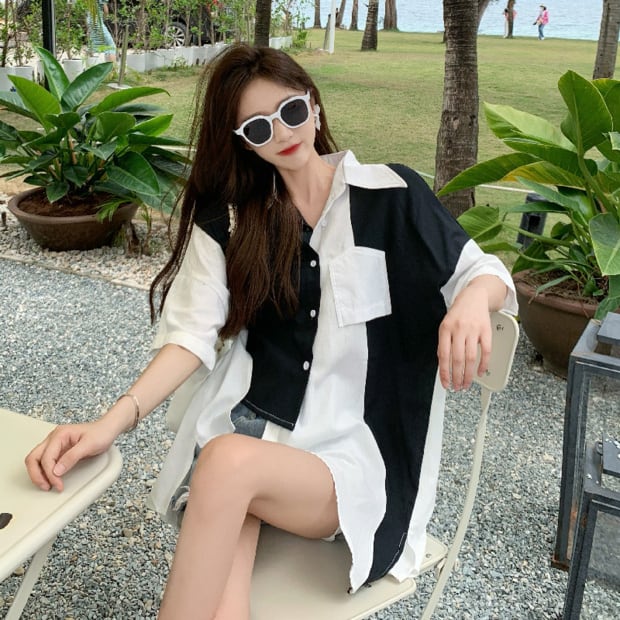 ブラウス サマースタイルロングシャツ レディース 大人ガーリー スウィート キュート カジュアル 夏物 ナナファッション32103537346