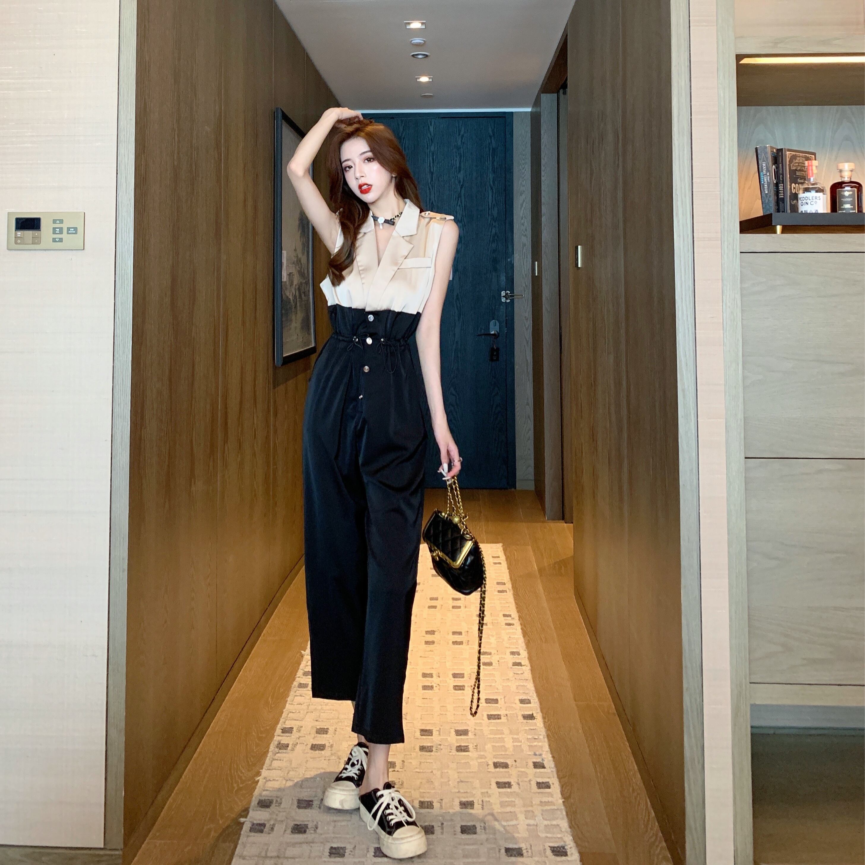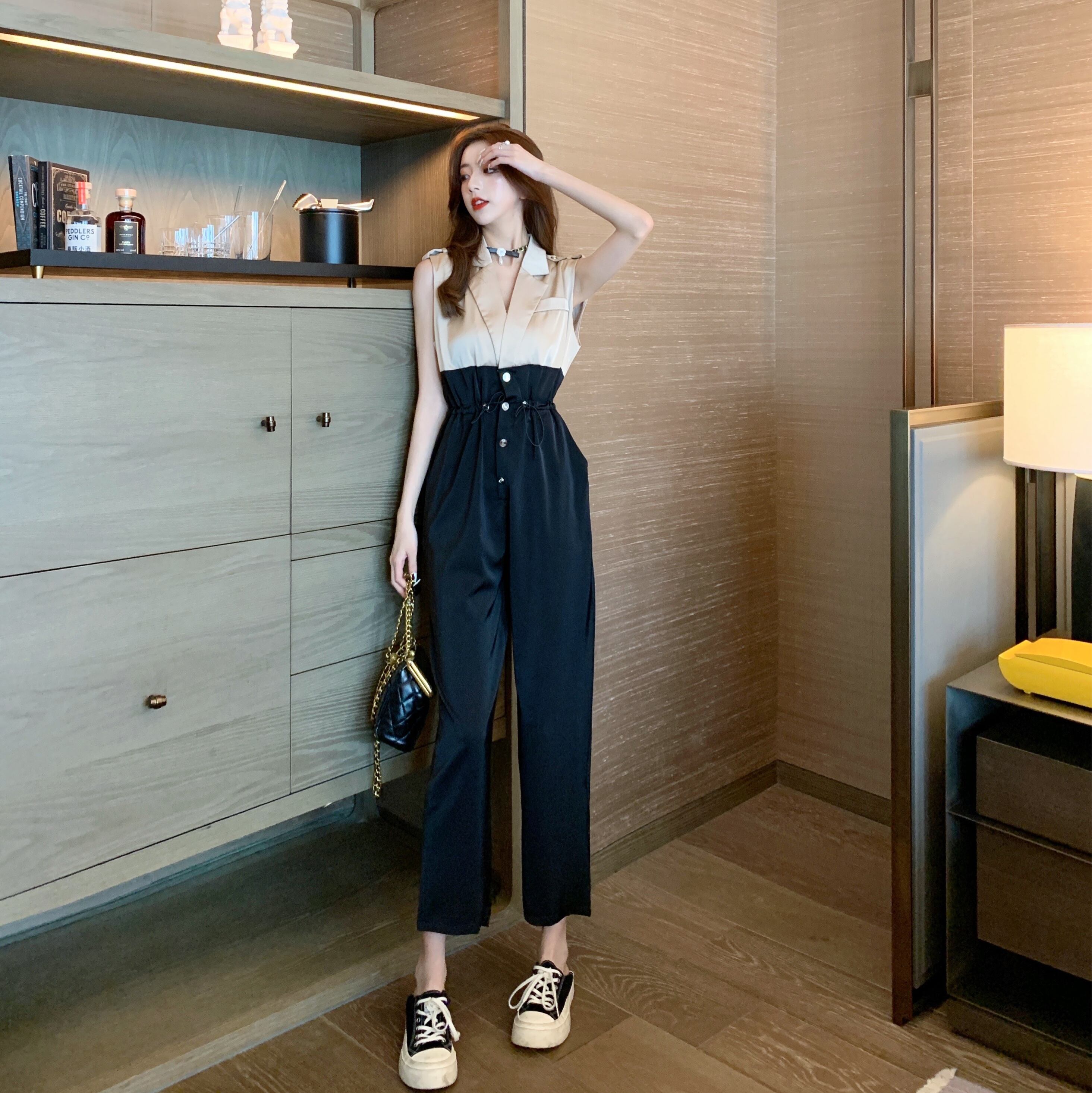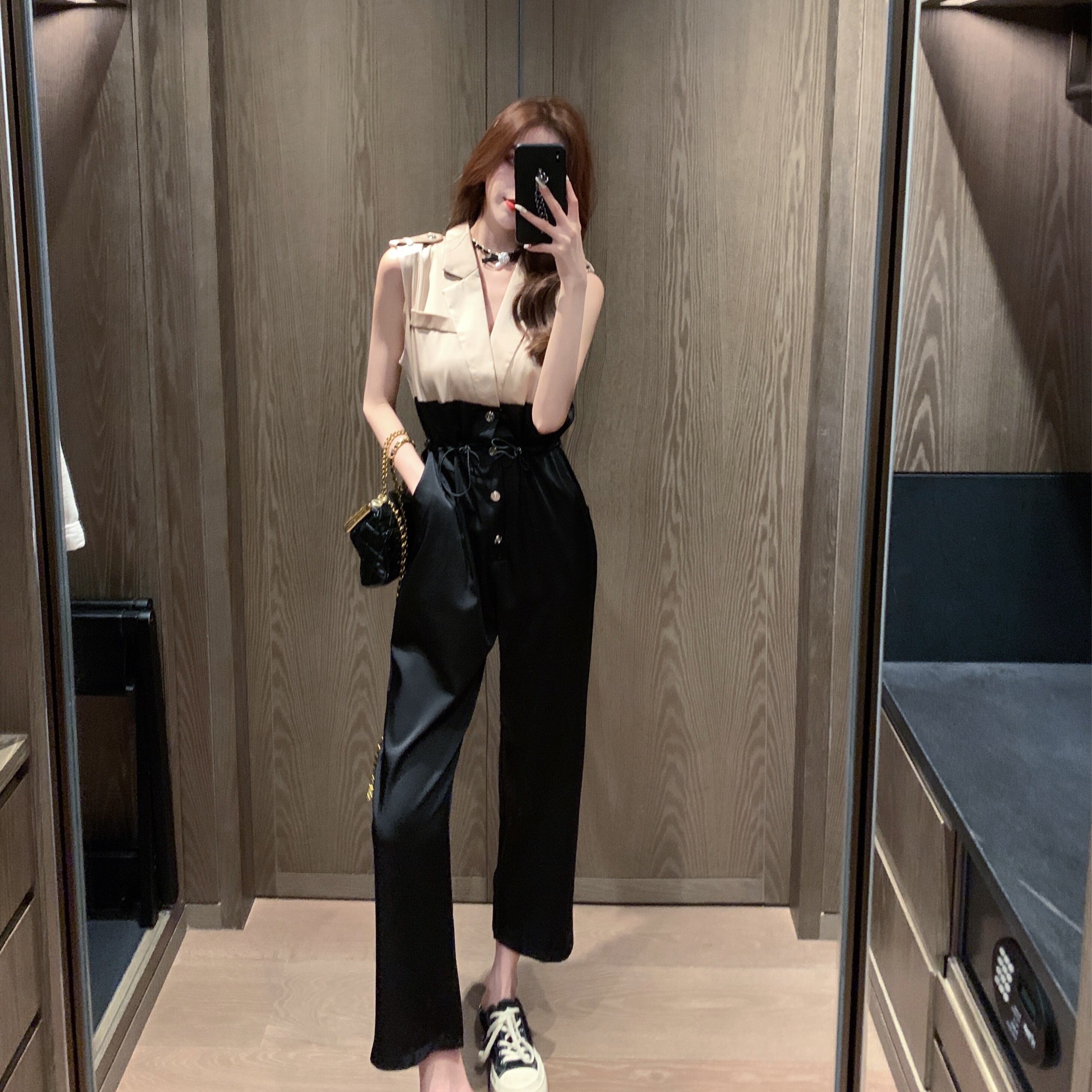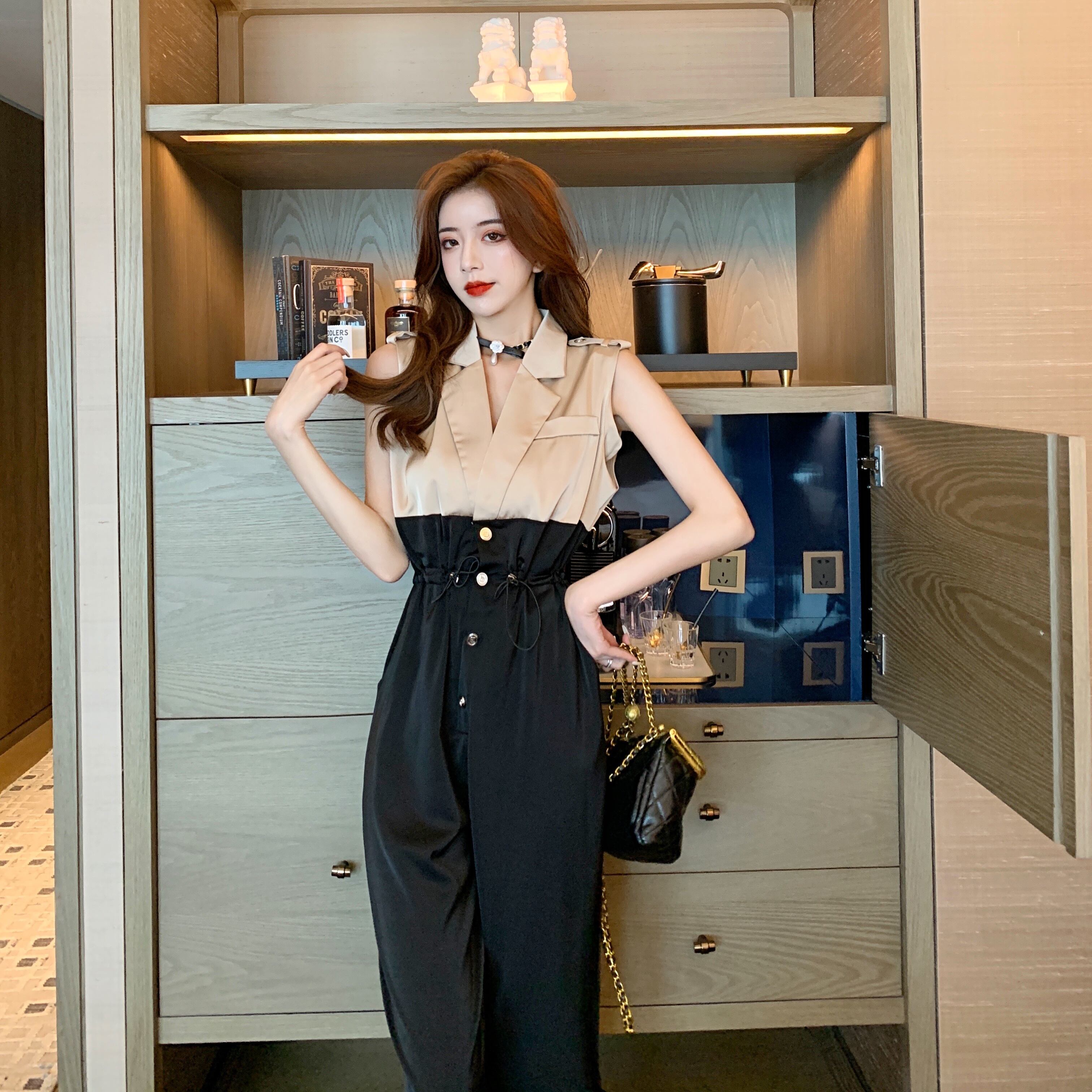 レッドジャンプスーツ オールインワン サマースタイルウェスト薄手レディース 夏物 ナナファッション63672847263