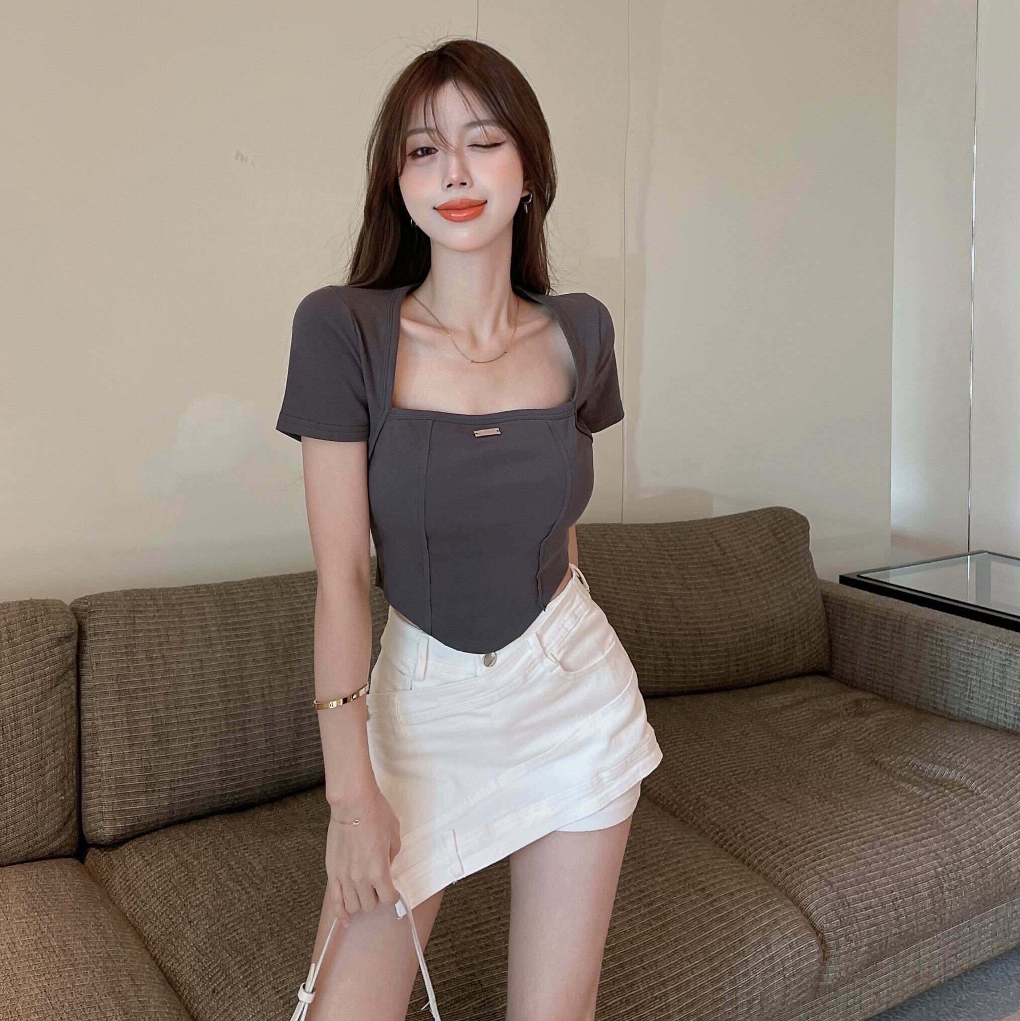 ショートトップス サマーTシャツ レディース 夏物 ピュア スクウェア ナナファッション34532005376