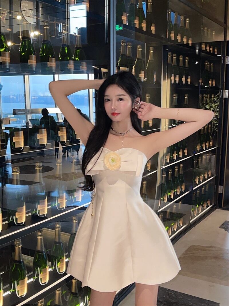 トップス Flowerデザイン ドレス サマーウェストAラインホワイトショートスカート 夏物 フラワーデザイン ナナファッション12806401581