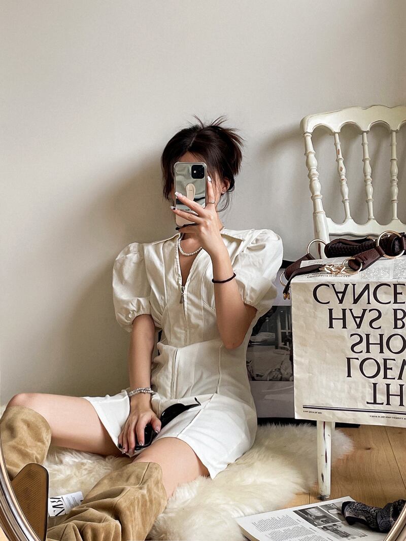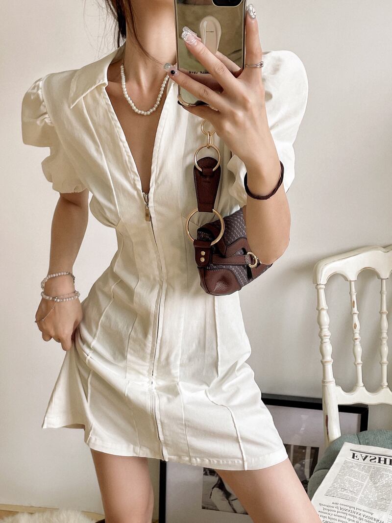 サマースタイルスカート Vネックスリーブプリーツドレス レディース 夏物 ナナファッション66379685864