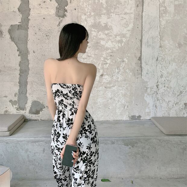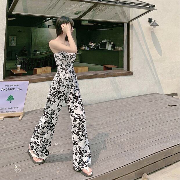 サマートップス ジャンプスーツ オールインワン ルーズストラップレスフローラル 夏物 花柄 ナナファッション50696078904