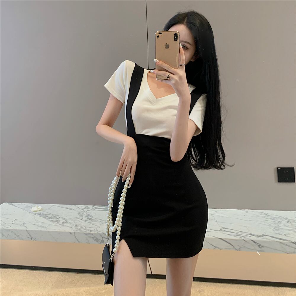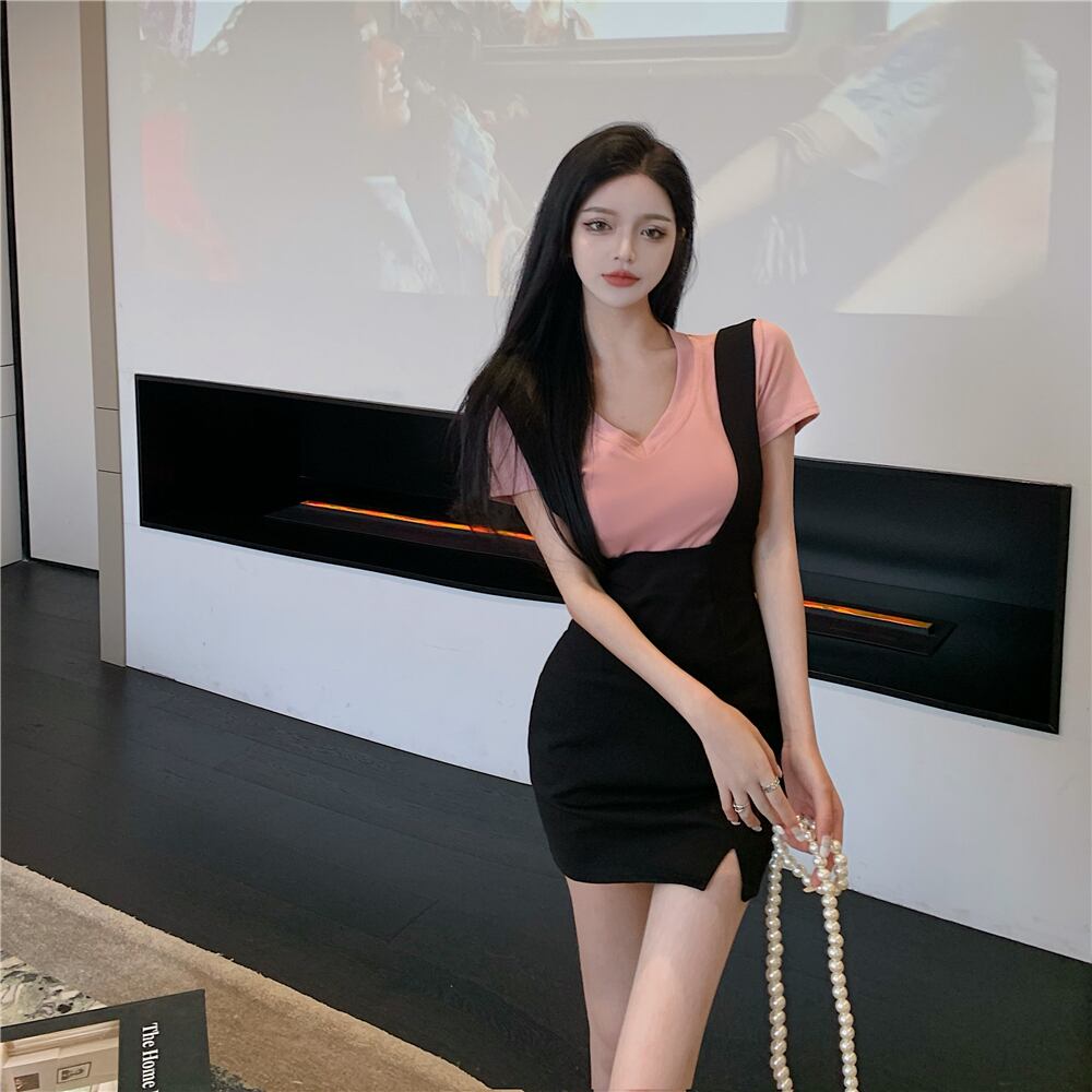 色:ホワイトT+ストラップドレス,ピンクT+ストラップドレス