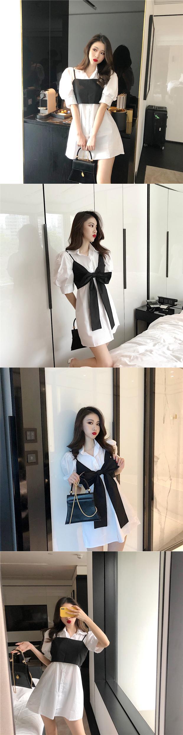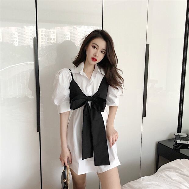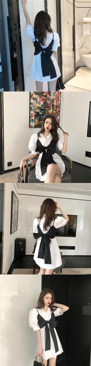 スプリングスタイルスリーブシャツ ドレス リボン 春物 ナナファッション856075695