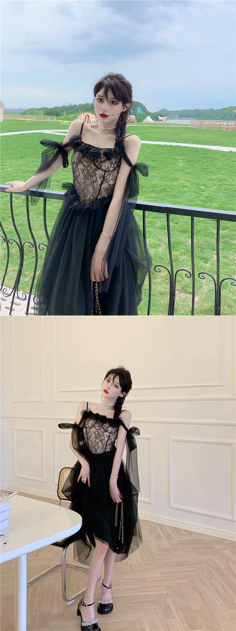 スタンダードレースドレス サマーウェストブラック コルセット レトロ 夏物 ナナファッション5009821517