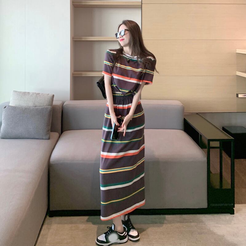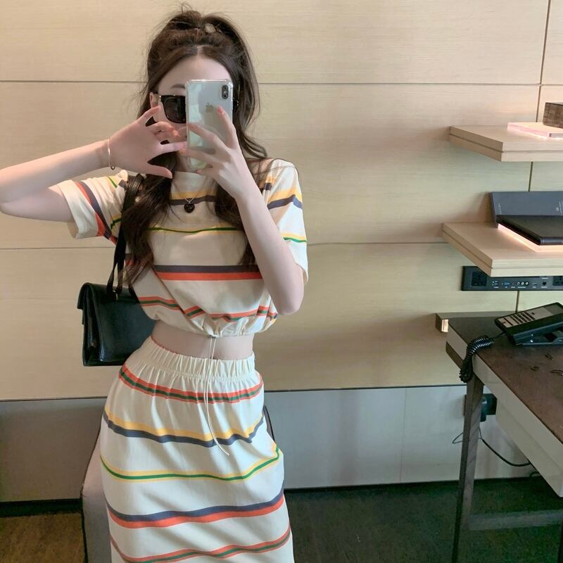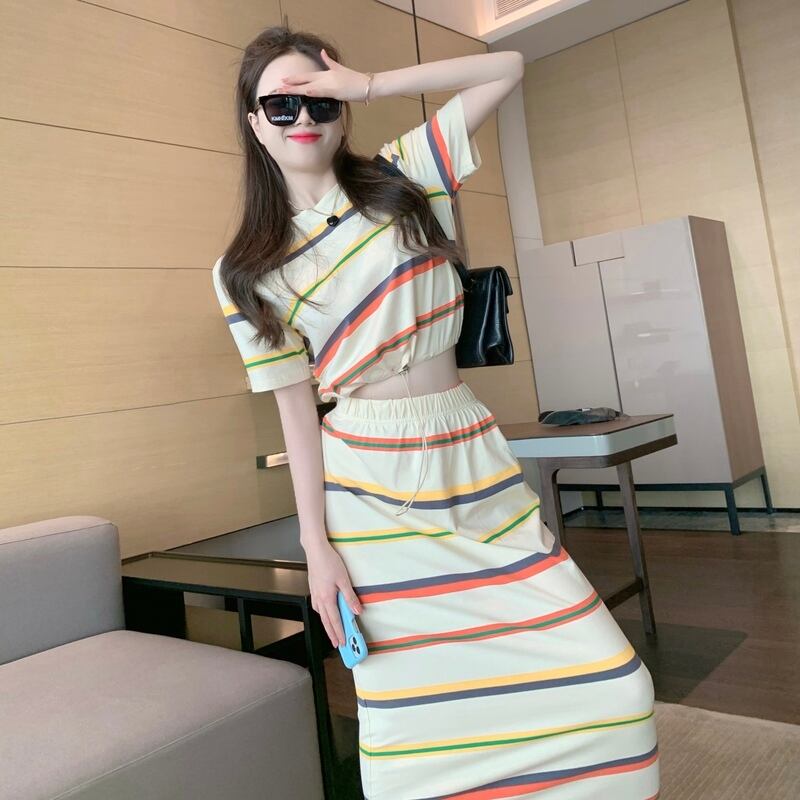 サマーストライプTシャツ スカート 大人ガーリー スウィート キュート カジュアル 夏物 ナナファッション33076695284