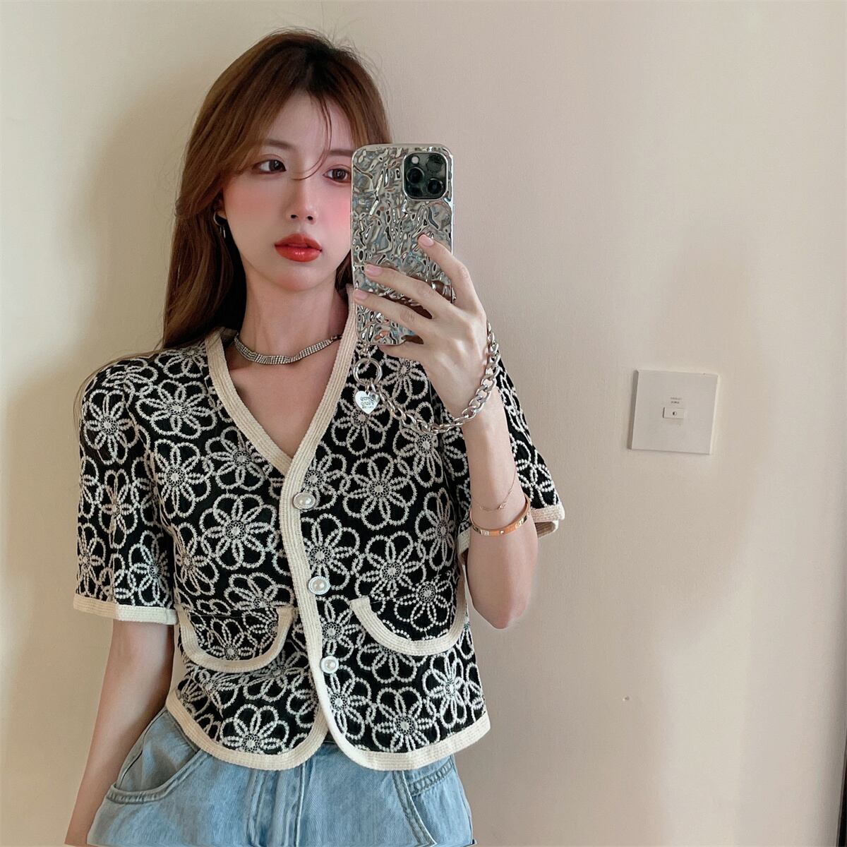 ショートコート サマースタイルルーズ薄手Vネックカーディガンジャケット レディース 夏物 ナナファッション57770915456