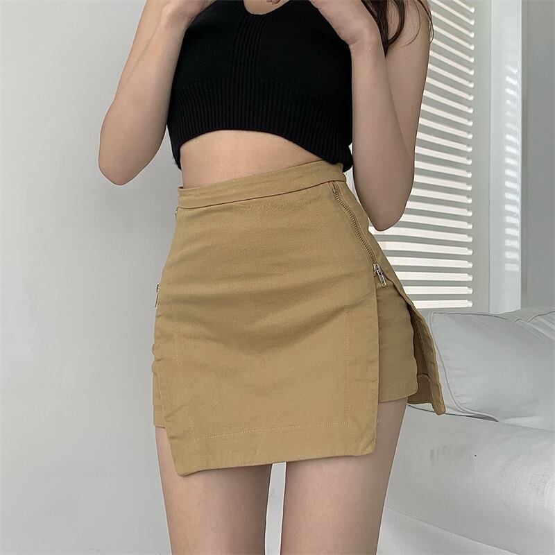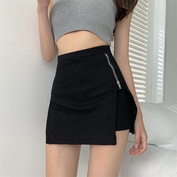 サマースタイルハイウェストウェスト薄手ダブルジッパースカート Aラインショートパンツ レディース 夏物 ナナファッション23873629683
