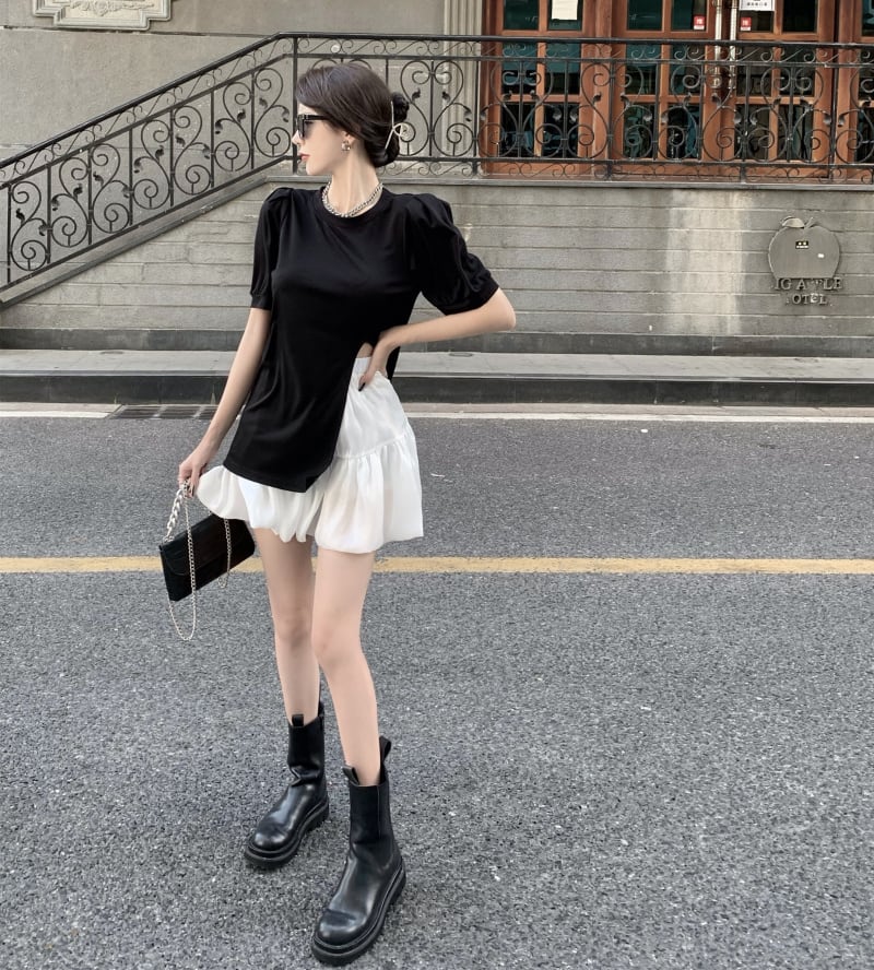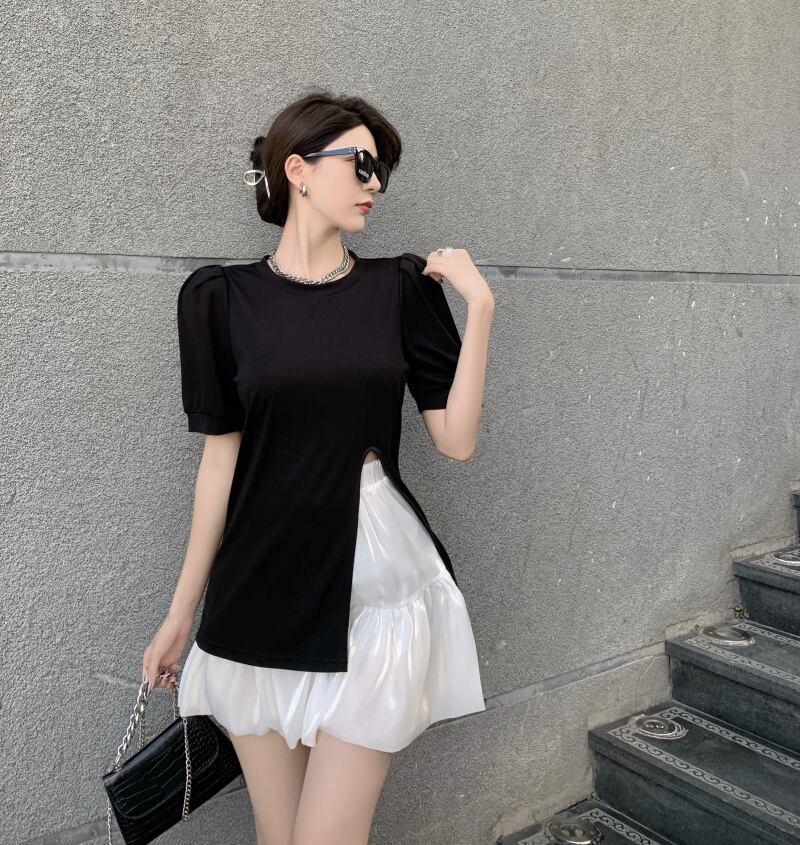 サマースタイルスリーブ半袖トップス ハイウェストウェストスカート パンツ レディース ショート ハーフスリーブ ストリート 夏物 ナナファッション67886270117