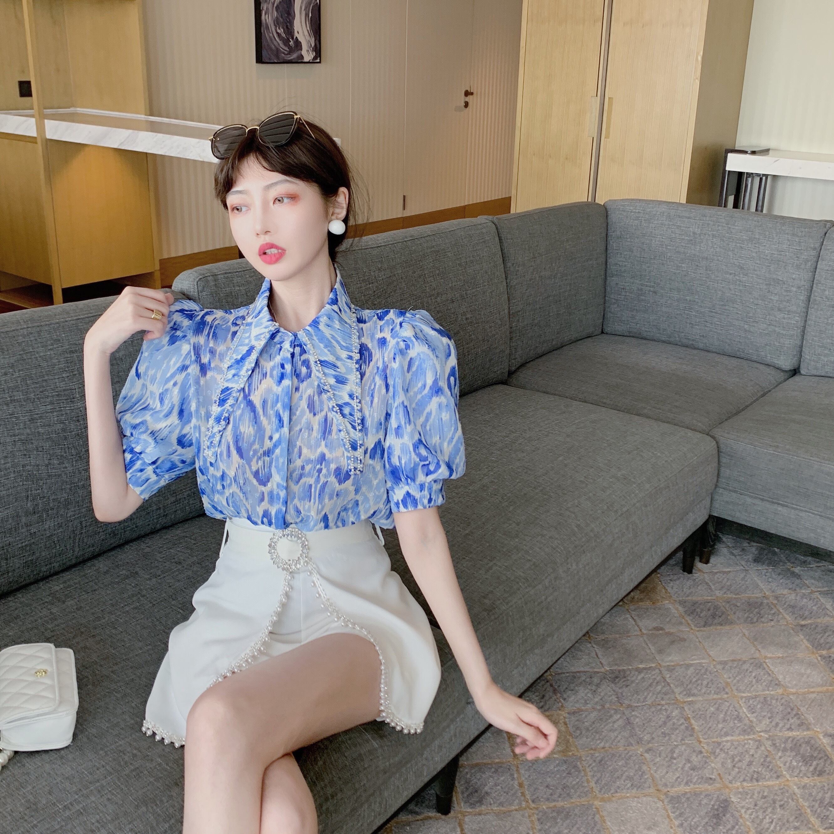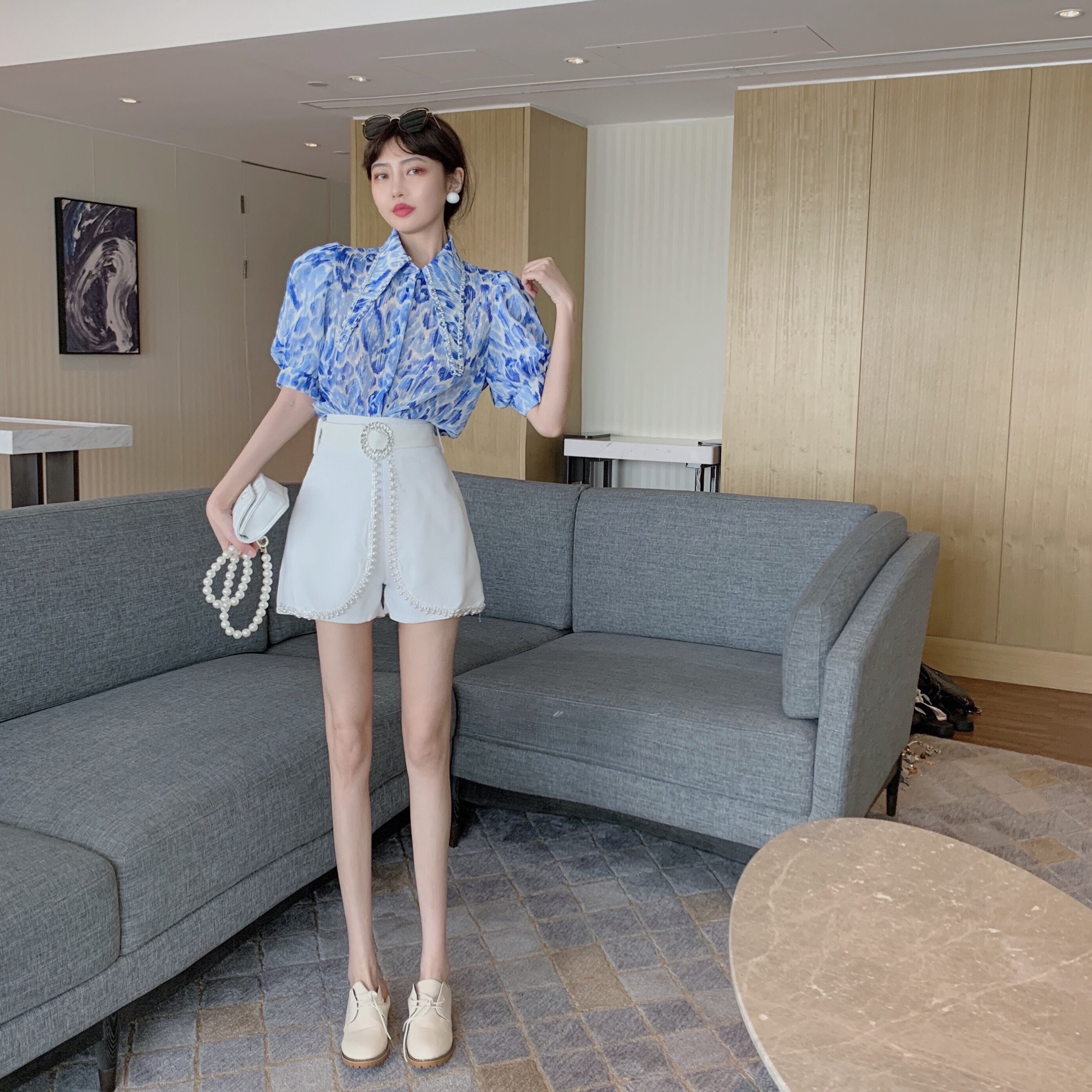 サマースタイルスリーブフローラルシャツ ハイウェストウェストショーツ 夏物 ブルマー 花柄 ナナファッション9651636404