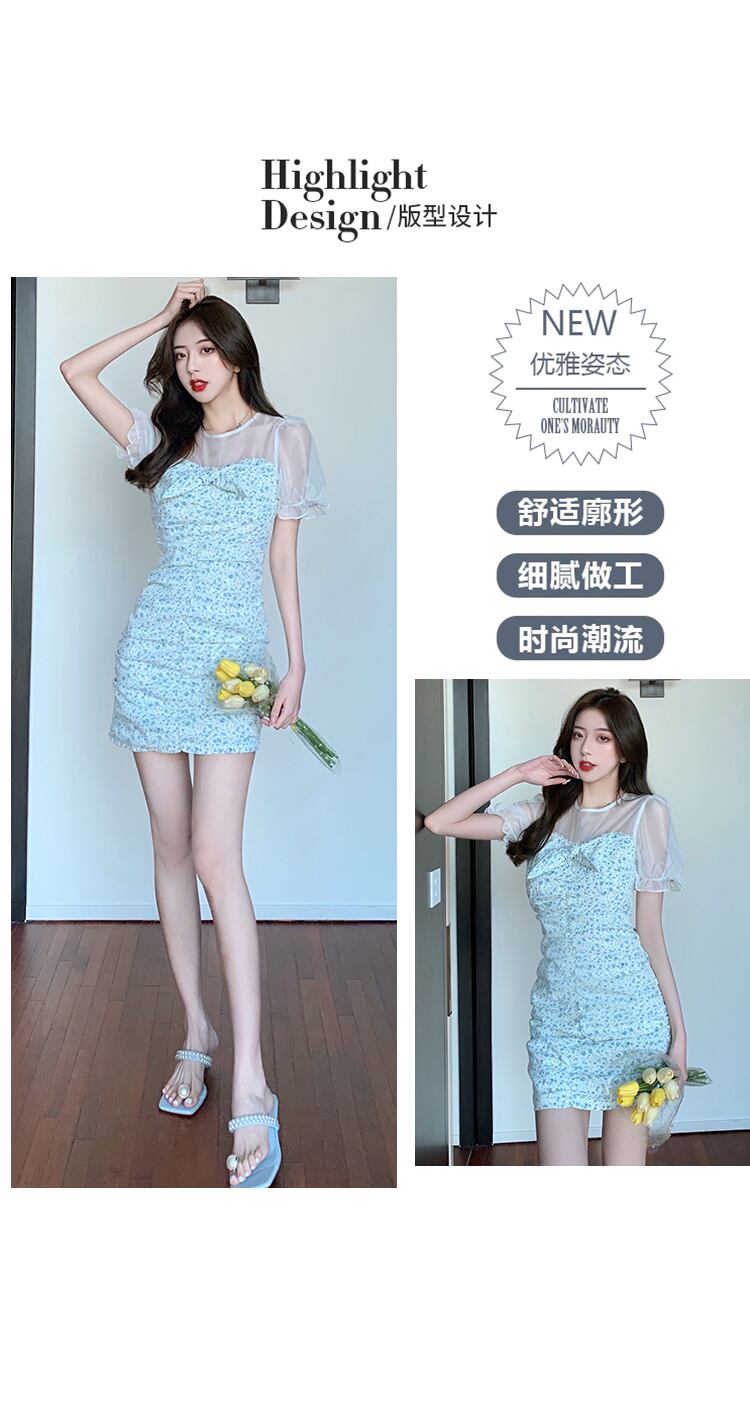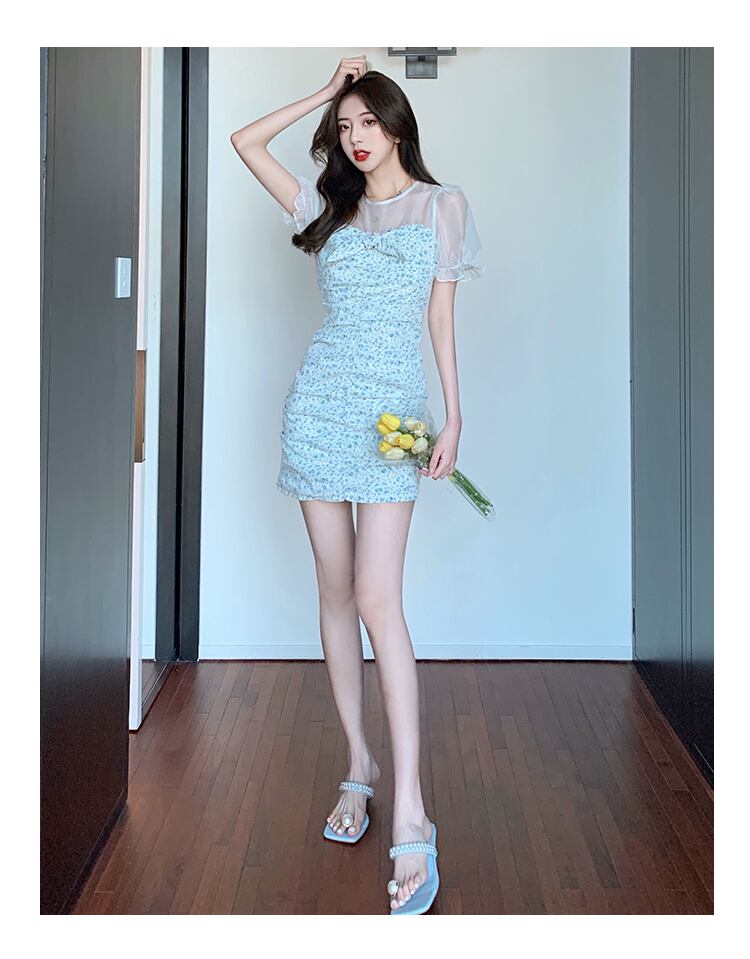 サマーフローラルプリーツドレス スカート 大人ガーリー スウィート キュート カジュアル 夏物 花柄 ステッチ ナナファッション29235093022