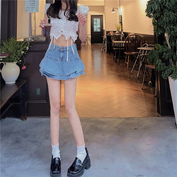 スカート サマーハイウェストウェストプリーツAラインショート 夏物 ナナファッション63806020018