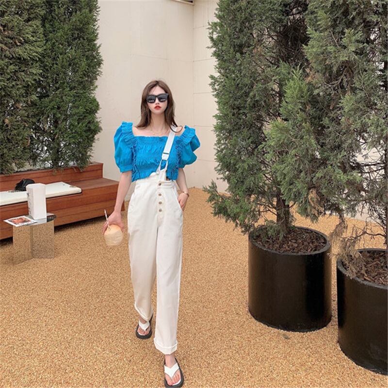 色:ホワイトトップ,ブルートップ,ホワイトストラップパンツ,ブラックストラップショーツ