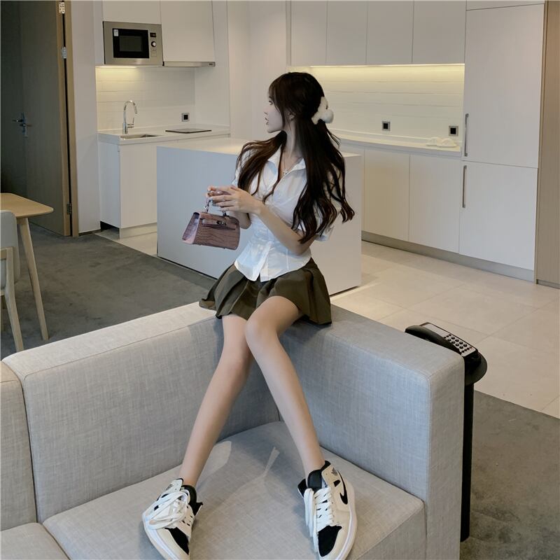 色:白のシャツ,アーミーグリーンのスカート