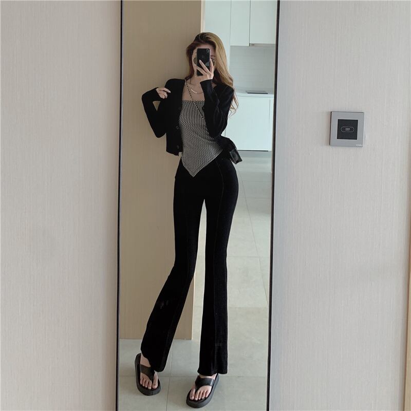 サマーレディースニットカーディガンカジュアルパンツ レッド ストリート 夏物 ナナファッション39774794035