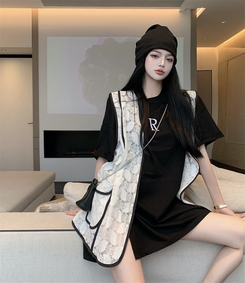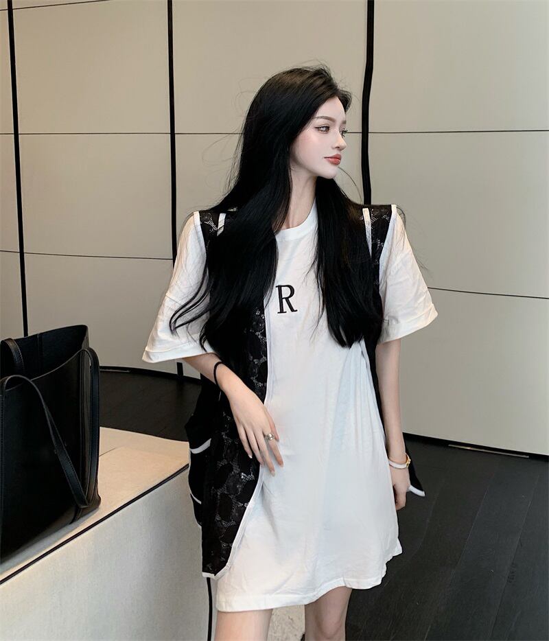 サイドスリットルーズTシャツ レース ストリート ステッチ ナナファッション29905471721