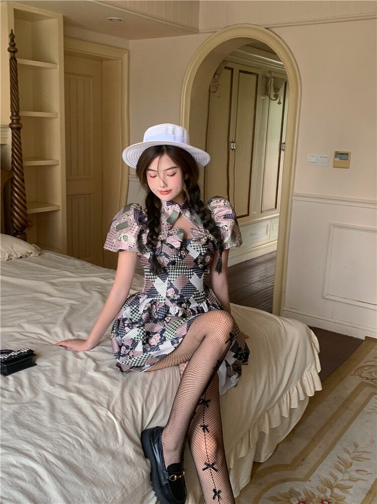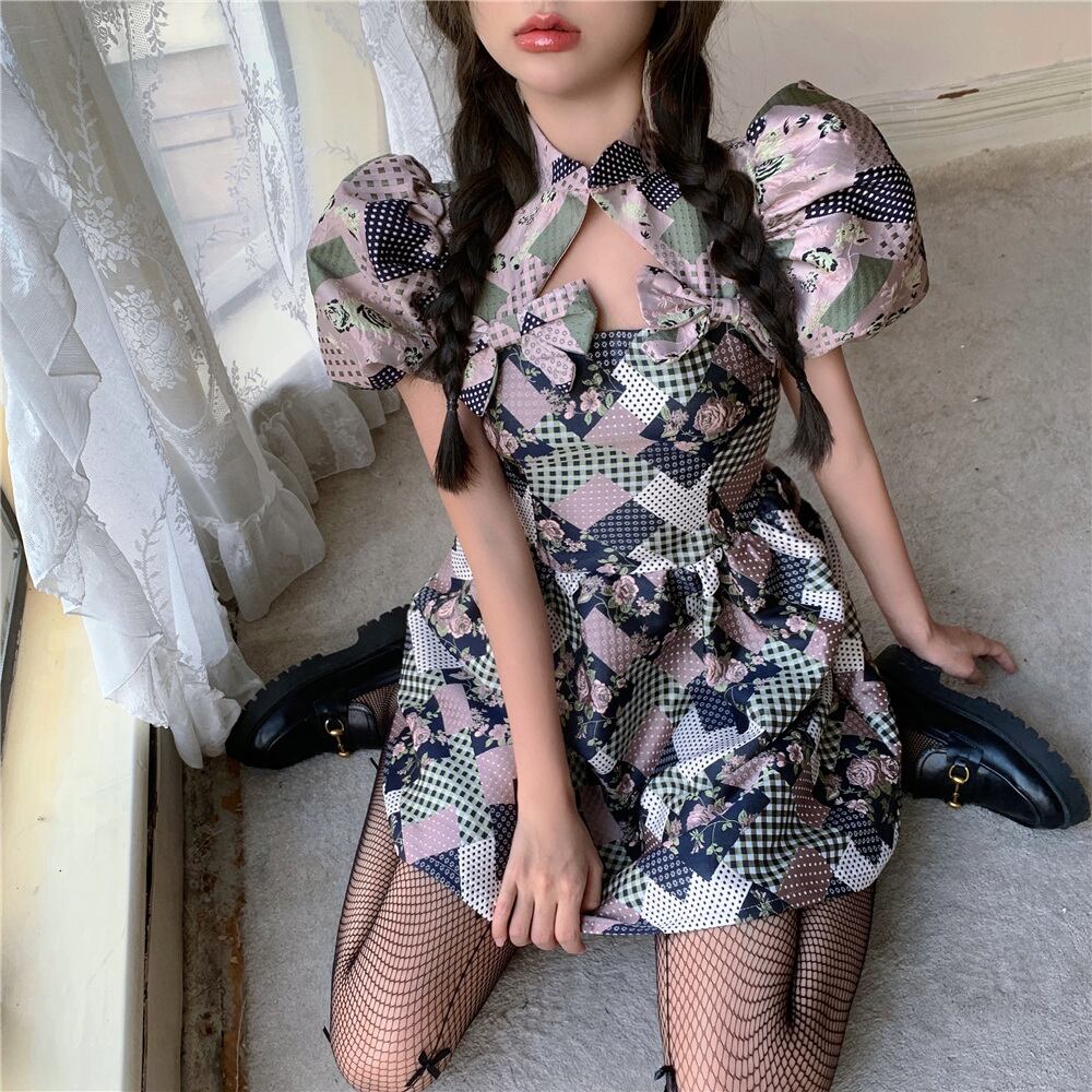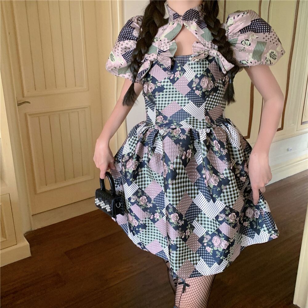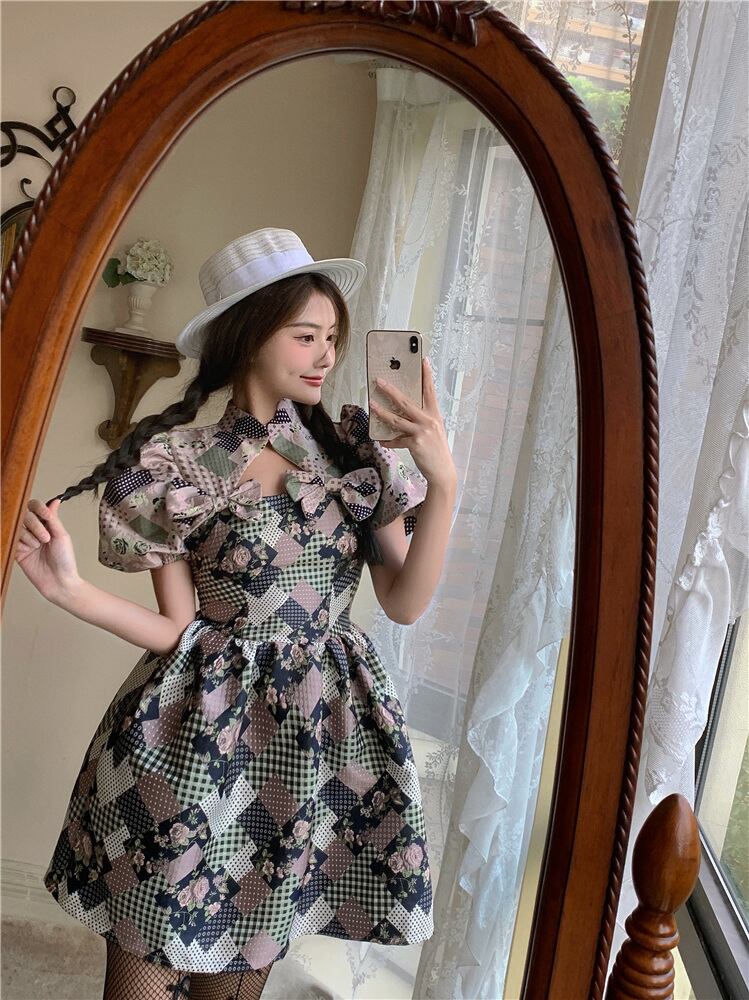 スカート サマースリーブリボンフローラルドレス 大人ガーリー スウィート キュート カジュアル 夏物 花柄 ナナファッション59380232459