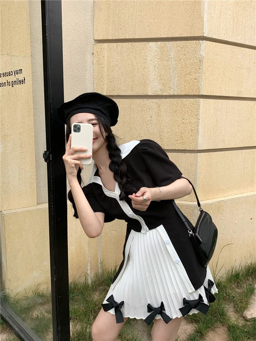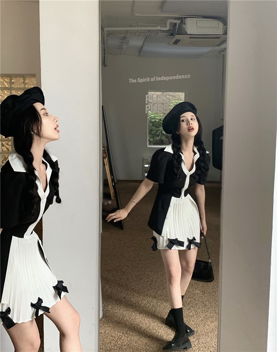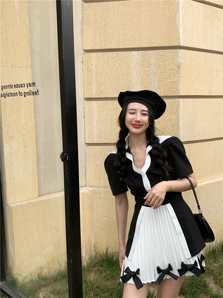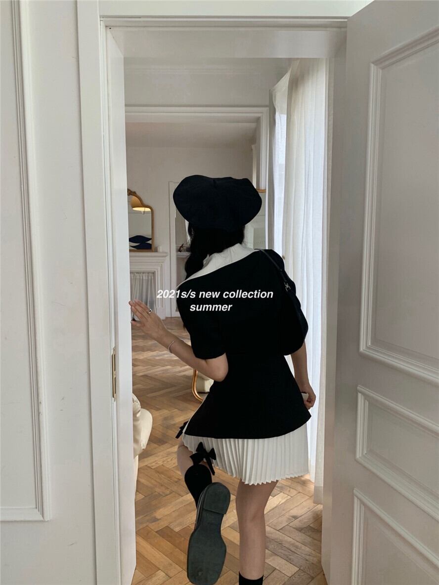 サマーシャツ リボンプリーツスカート 大人ガーリー スウィート キュート カジュアル 夏物 ナナファッション75999195173