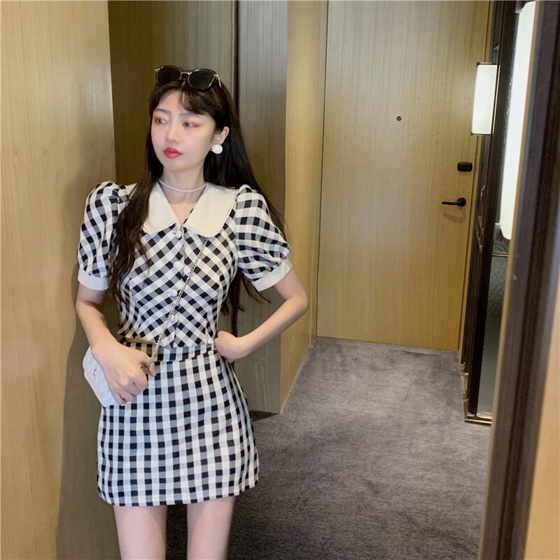スタイルスタンダードカラーシャツ ハイウェストスカート レトロ 大人ガーリー スウィート キュート カジュアル ナナファッション86925025174