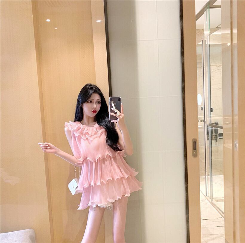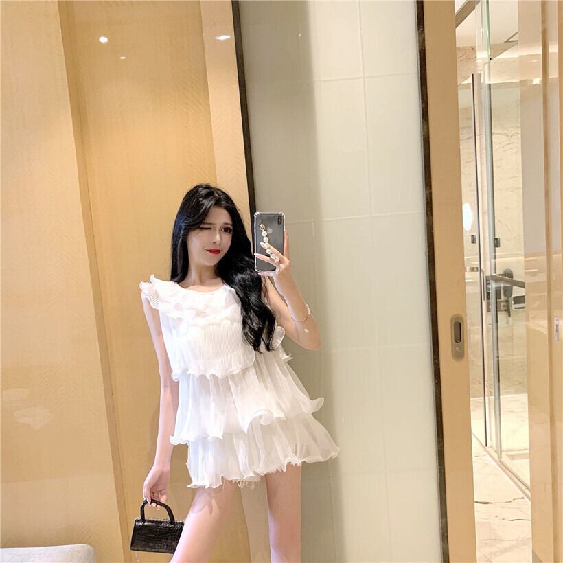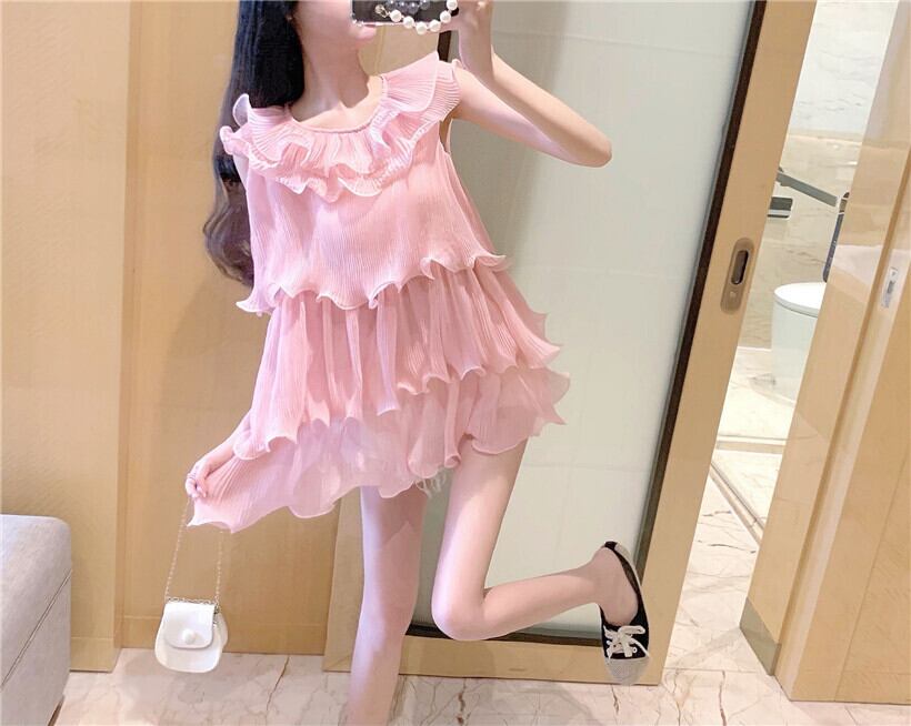 サイドシフォンスカート サマードレス 大人ガーリー スウィート キュート カジュアル 夏物 ナナファッション83566528604