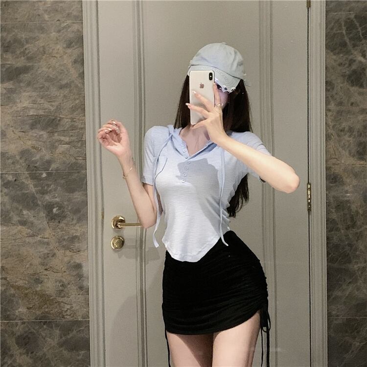 色:ライトブルーのフード付きT,黒のフード付きT,グレーのバッグヒップスカート,ブラックバッグヒップスカート
