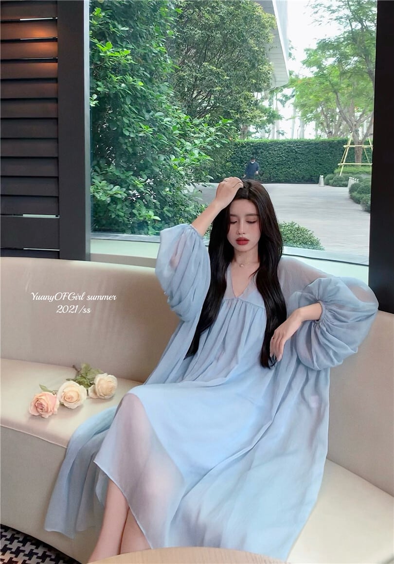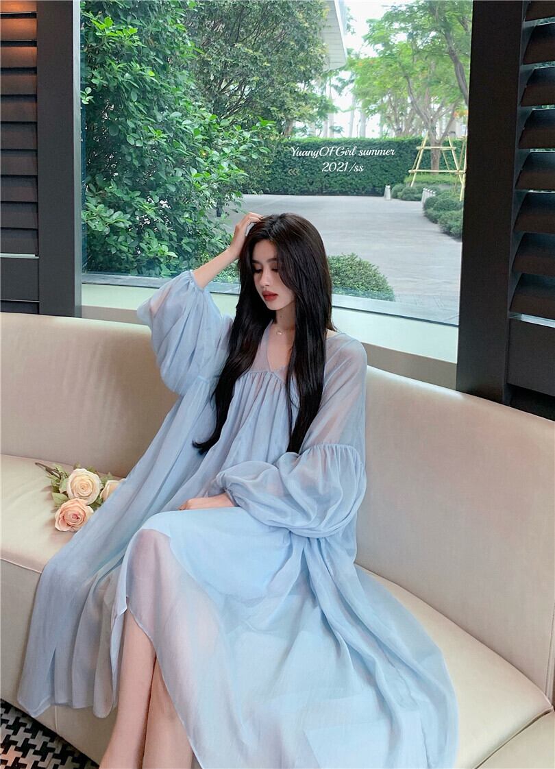 メッシュドレス サマースリーブロングスカート ランタンスリーブ 大人ガーリー スウィート キュート カジュアル 夏物 ナナファッション99410594600