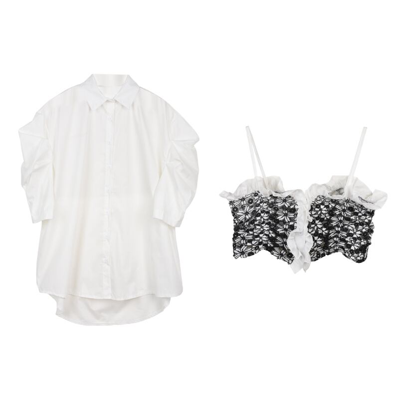 色:青いシャツ,白のシャツ,青いスリング,ホワイトサスペンダー
