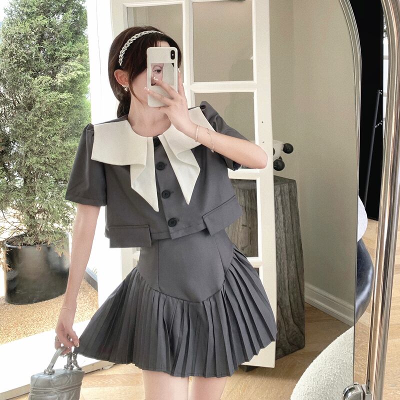 サマーショートトップス プリーツスカート ストリート 夏物 ナナファッション21878026801