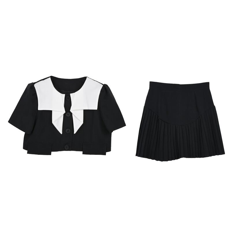 ショートサマードレス スタイルカラーブラウス 薄手プリーツスカート 夏物 ナナファッション9590414444