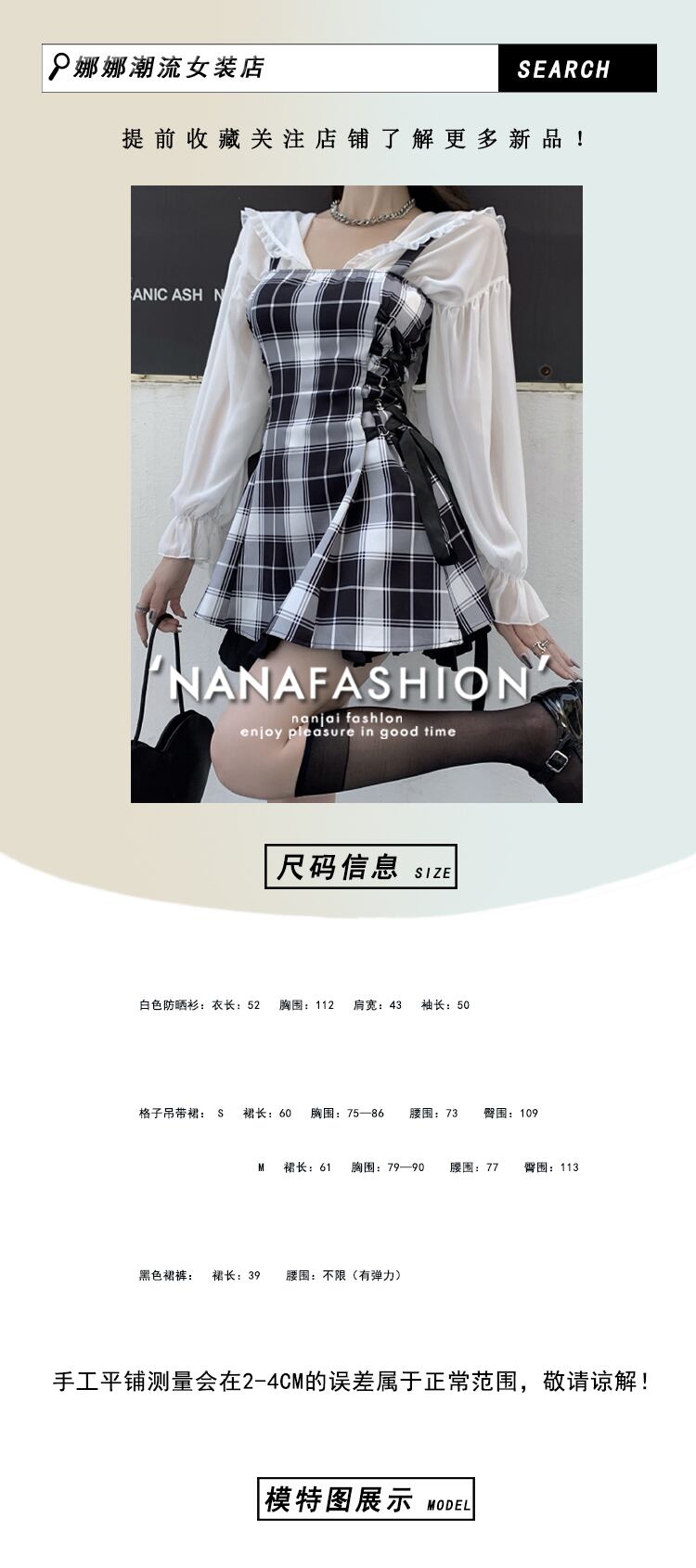 色:白い日焼け止め,チェック柄ホルタースカート,黒キュロット