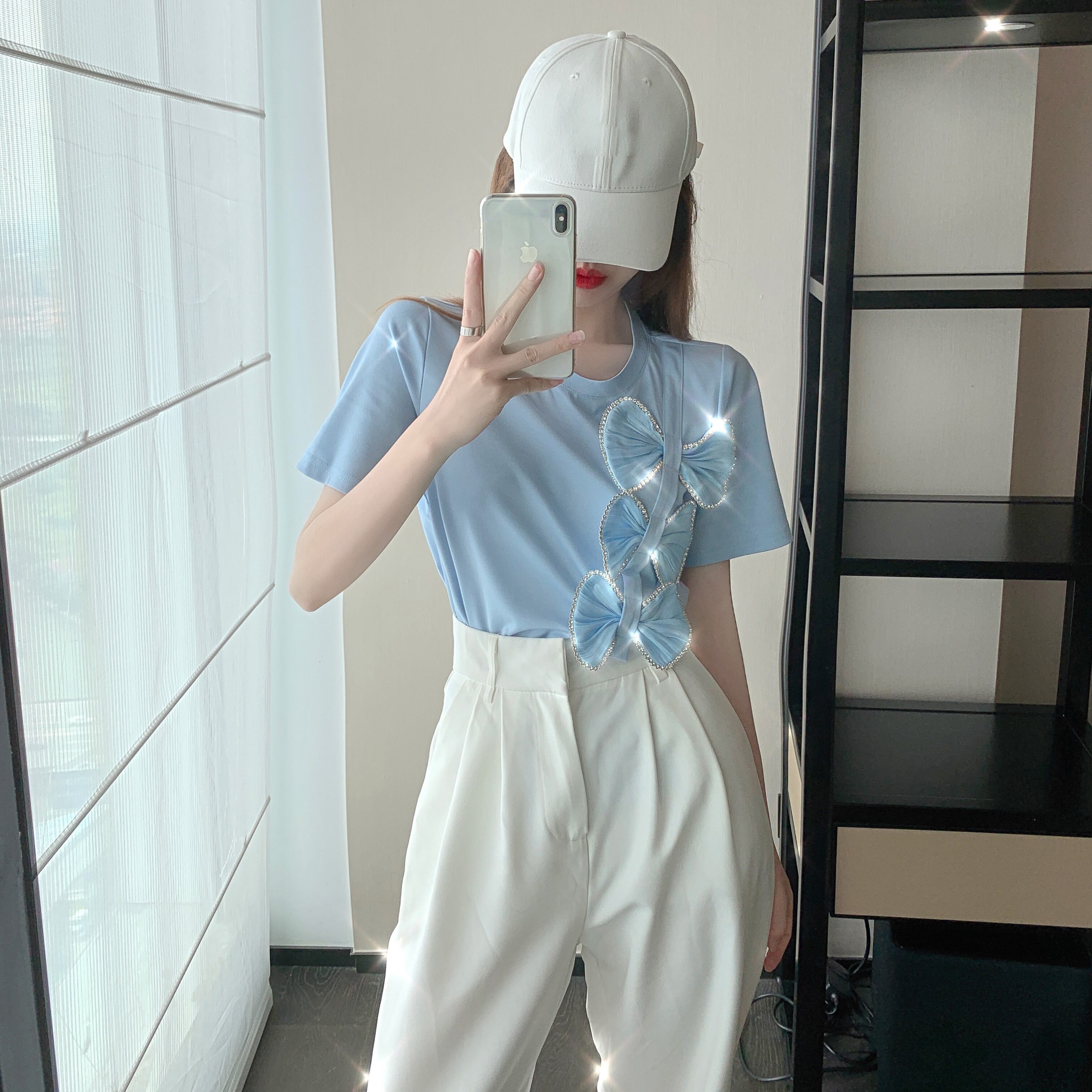 リボンTシャツ レディースサマールーズトップス 夏物 ナナファッション74542155673