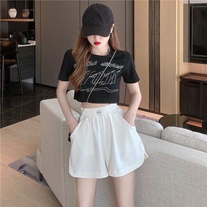 サマーハイウェストウェストワイドレッグカジュアルパンツ レディース薄手ルーズレッドAラインショーツ 夏物 ブルマー ワイドパンツ ナナファッション27287505306
