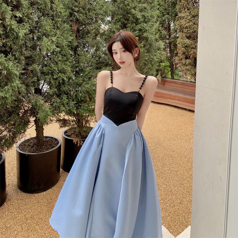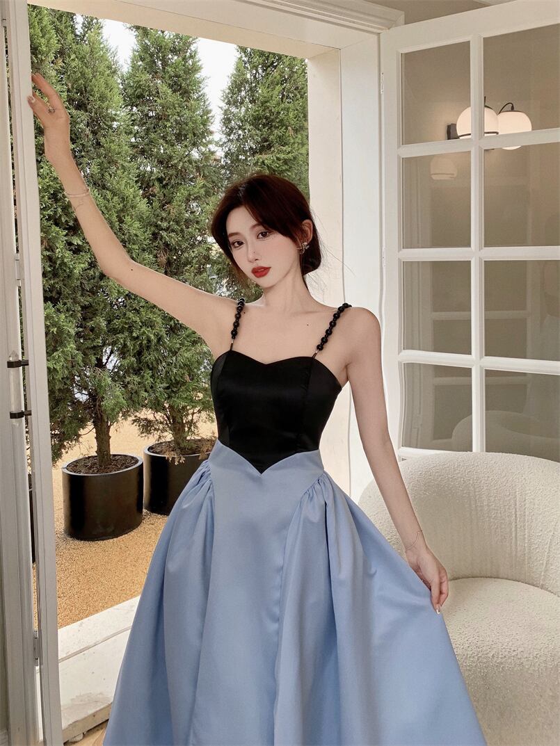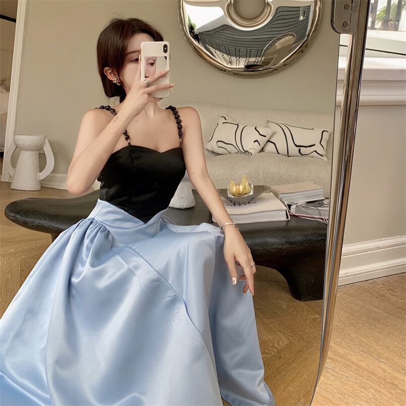 サマースタイル薄手ブラックパールスカート ウェストドレス レディース レース 夏物 真珠 ナナファッション92398497310