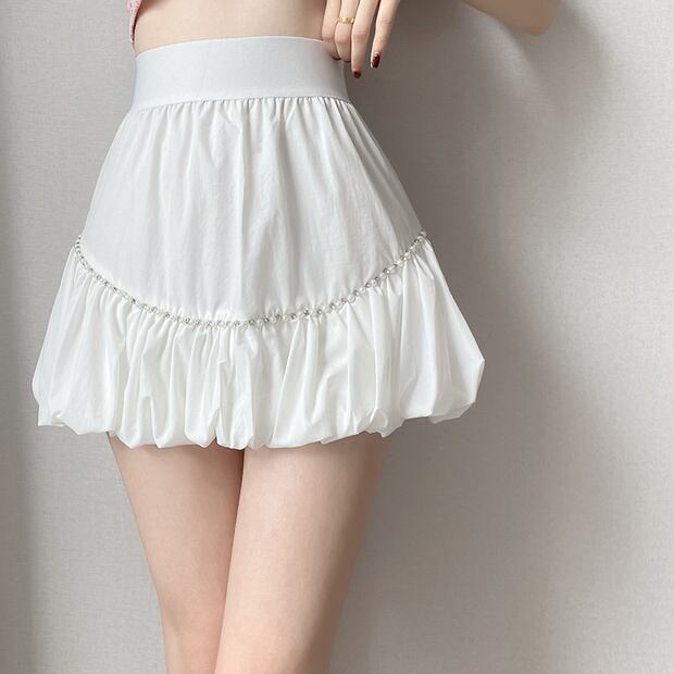 スカート サマーハイウェストウェストホワイトショートAライン 大人ガーリー スウィート キュート カジュアル 夏物 ナナファッション57483524133