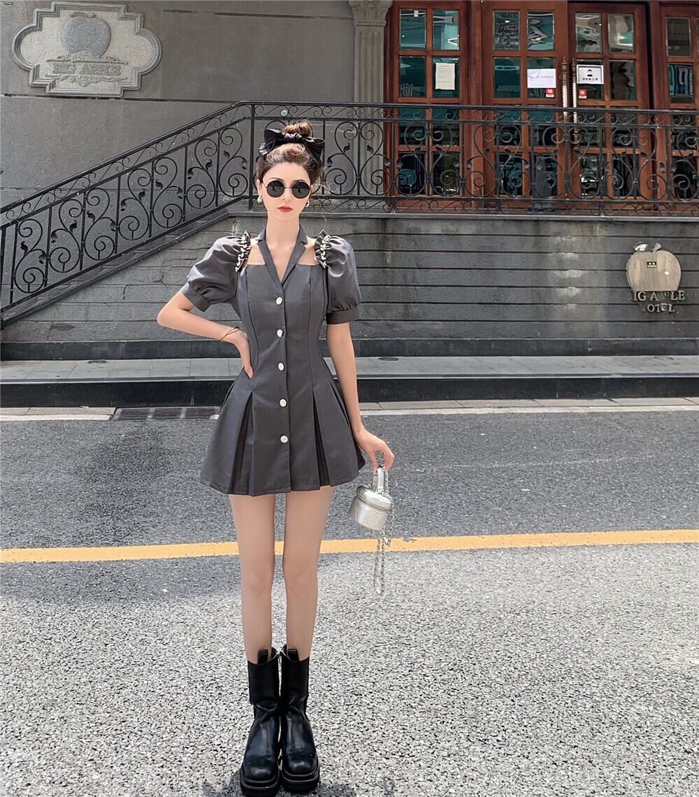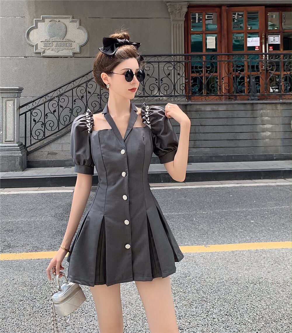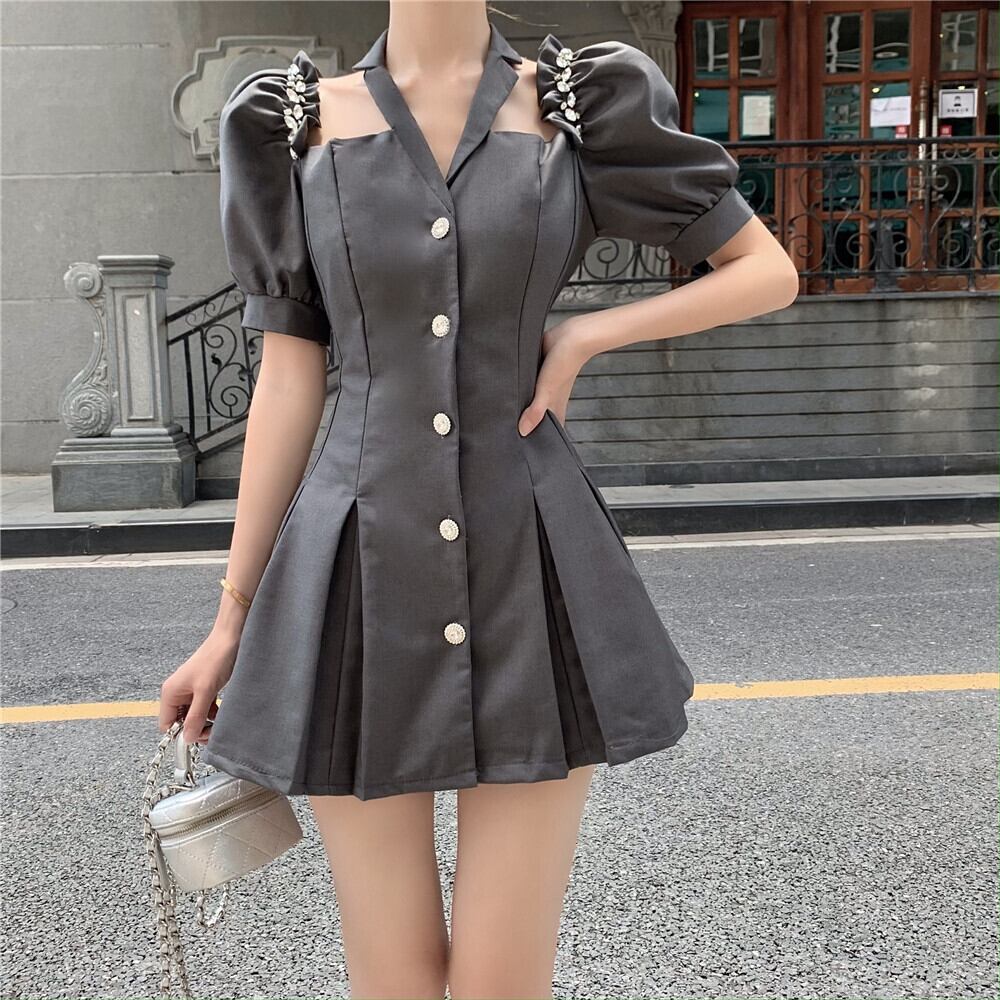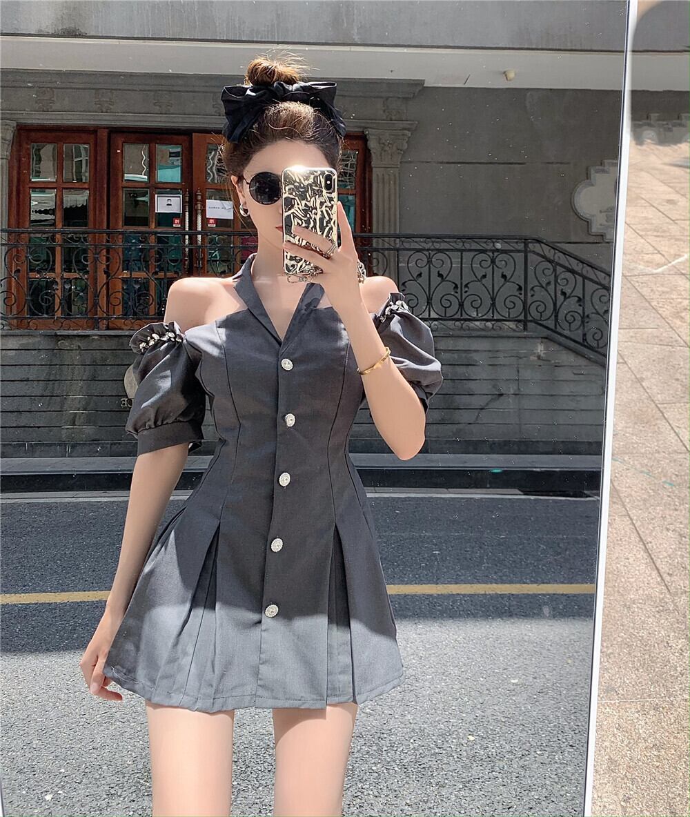 スカート サマーウェストプリーツドレス ストリート 大人ガーリー スウィート キュート カジュアル 夏物 オフショルダー ナナファッション25078810758