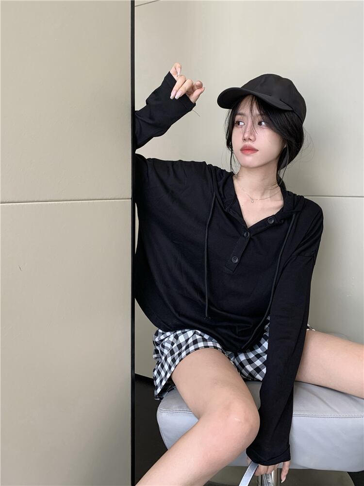 カジュアルフードルーズTシャツ ショーツ レッド ロング ブルマー ナナファッション1411086946