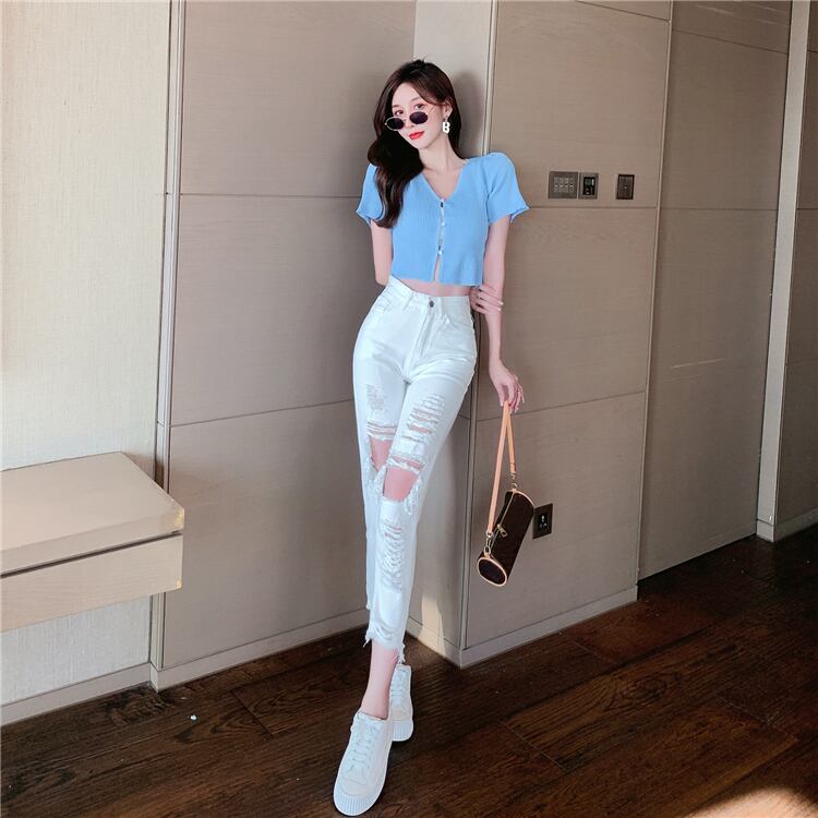 サマースタイルジーンズ ハイウェストホワイトパンツ レディース 夏物 ナナファッション78047562761