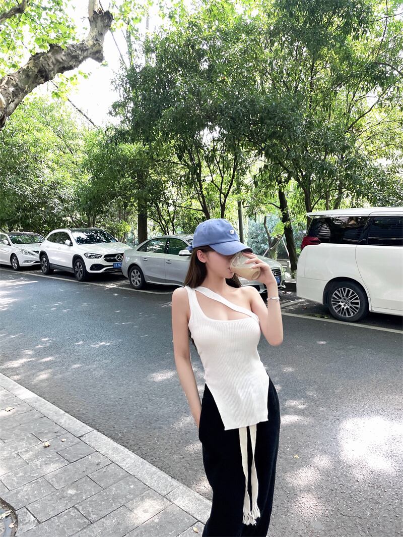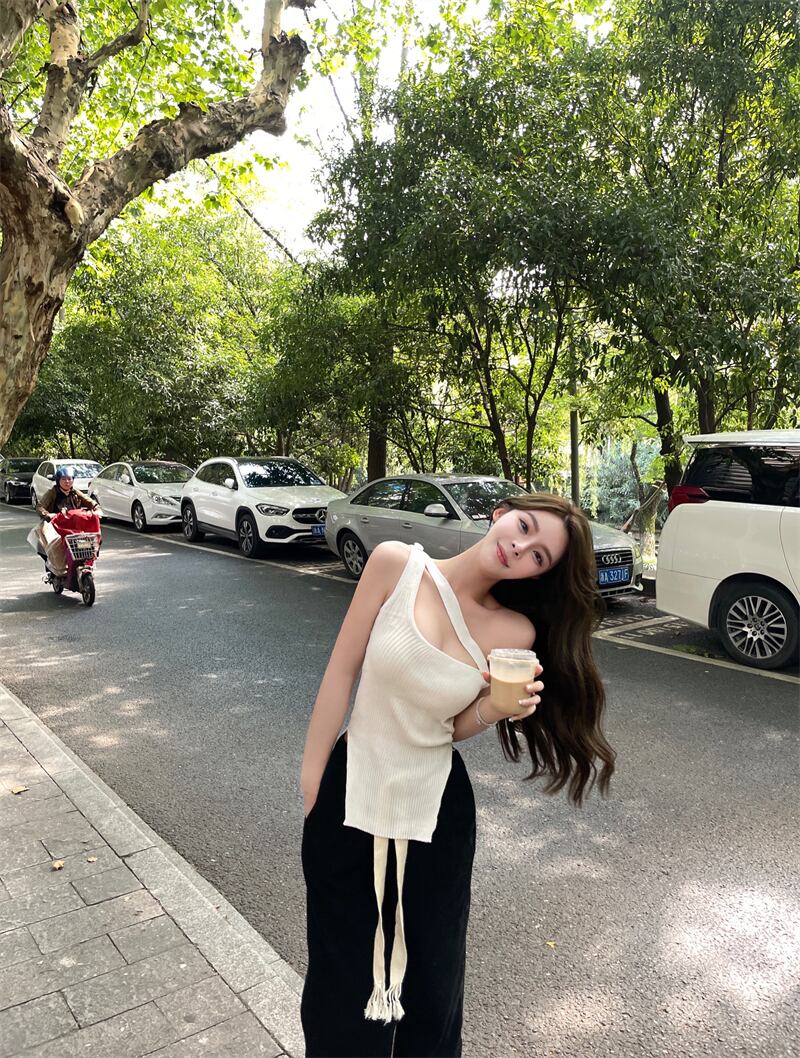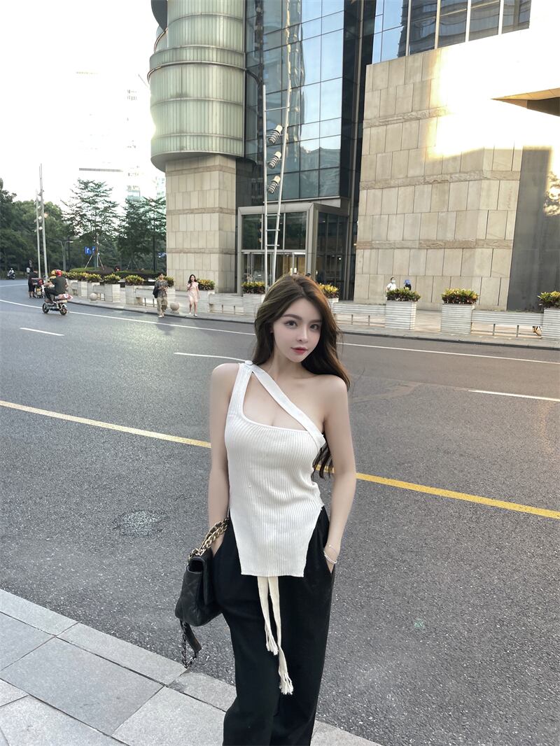 ストラップレスニットホルターギャザーロングカジュアルパンツ ソリッド カラーTシャツ レディース ソリッドカラー ナナファッション47240807006