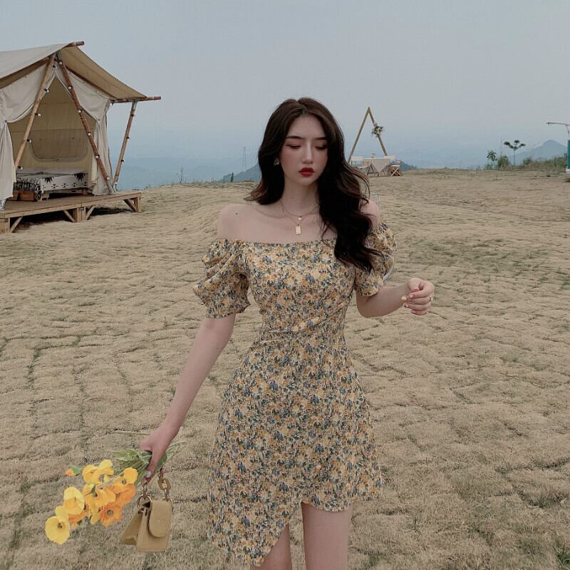フローラルショートスカート サマースリーブウェストドレス 夏物 花柄 ナナファッション87043783197