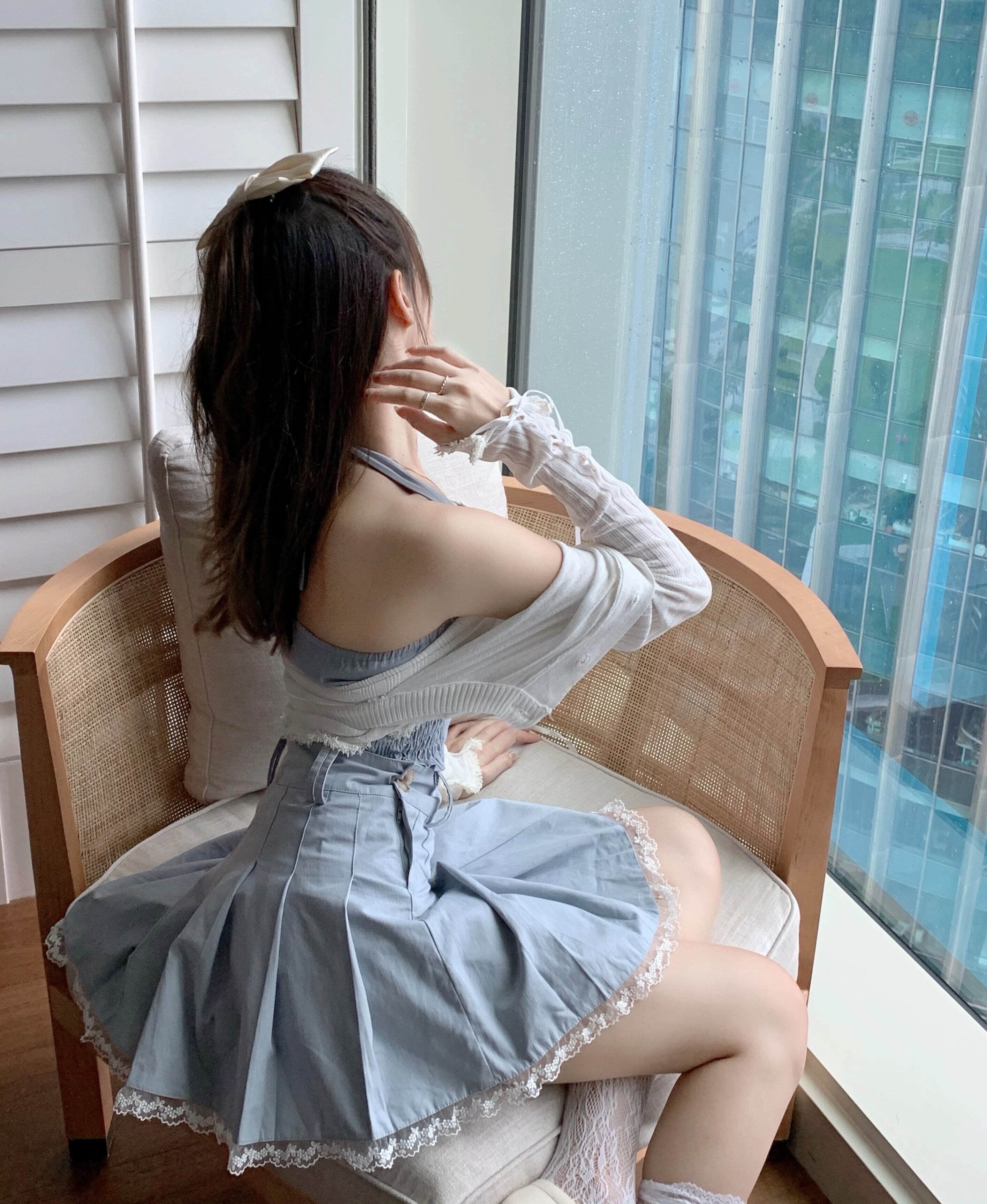 カーディガンジャケット ハイウェストプリーツスカート ロング レース ピュア ナナファッション34016800198