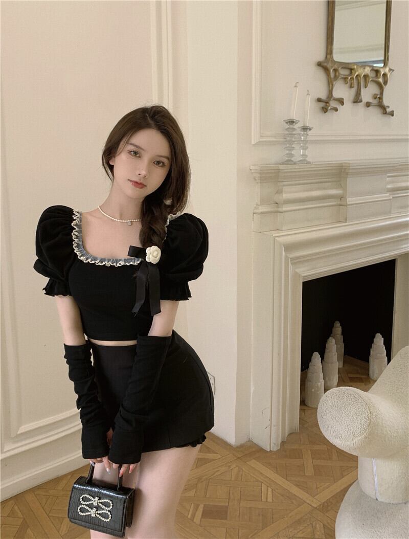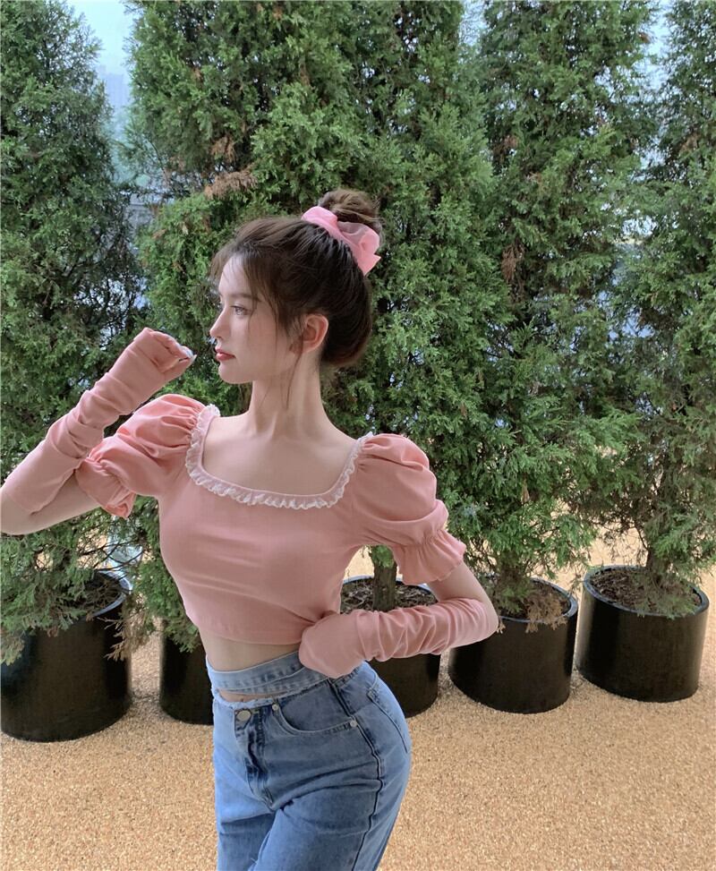スリーブニットTシャツ 薄手レースショート 半袖 ハーフスリーブ 大人ガーリー スウィート キュート カジュアル スクウェア ナナファッション63371365248