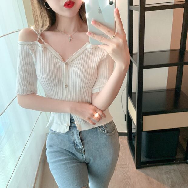 トップス サマースタイルVネックストラップレスカーディガン薄手セーター 大人ガーリー スウィート キュート カジュアル 夏物 ナナファッション5418032466