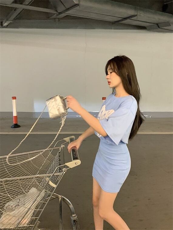 プリントショートスカート サマーラウンドネック半袖スリーブウェストTシャツ ドレス ハーフスリーブ 夏物 Oネック ナナファッション46954586693