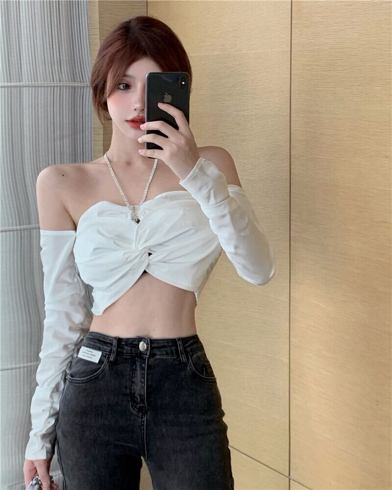 トップス サマーストラップレスラインストーンホルターサテンシャツ レディース 夏物 ナナファッション15794839419