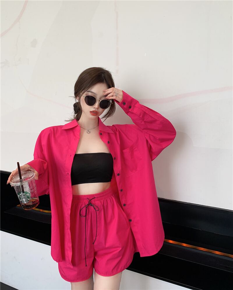トップス カラールーズシャツ ハイウェストカジュアルショーツ レッド ロング ブルマー ピュア ナナファッション16566752233