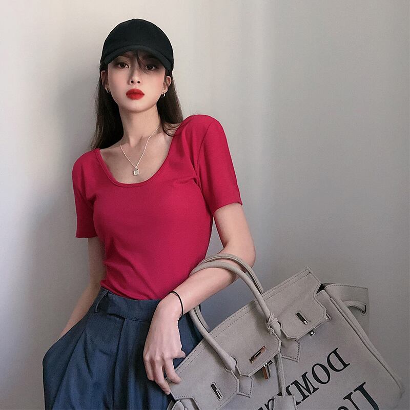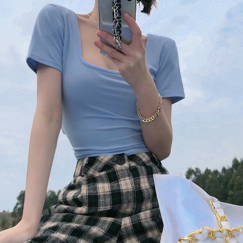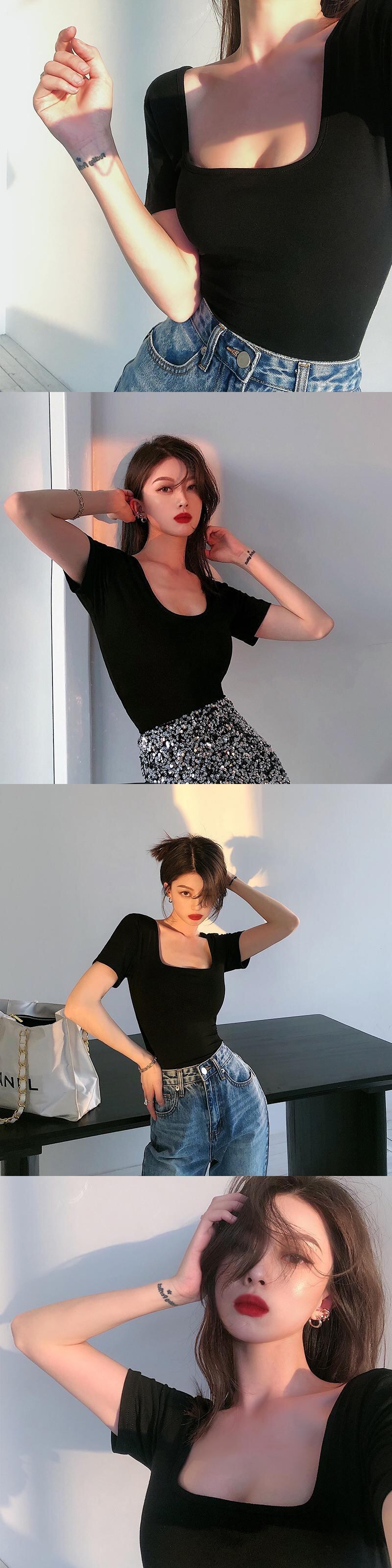 サマーショートスリムTシャツ ルーズブラックトップス 夏物 スクウェア ナナファッション91076037244